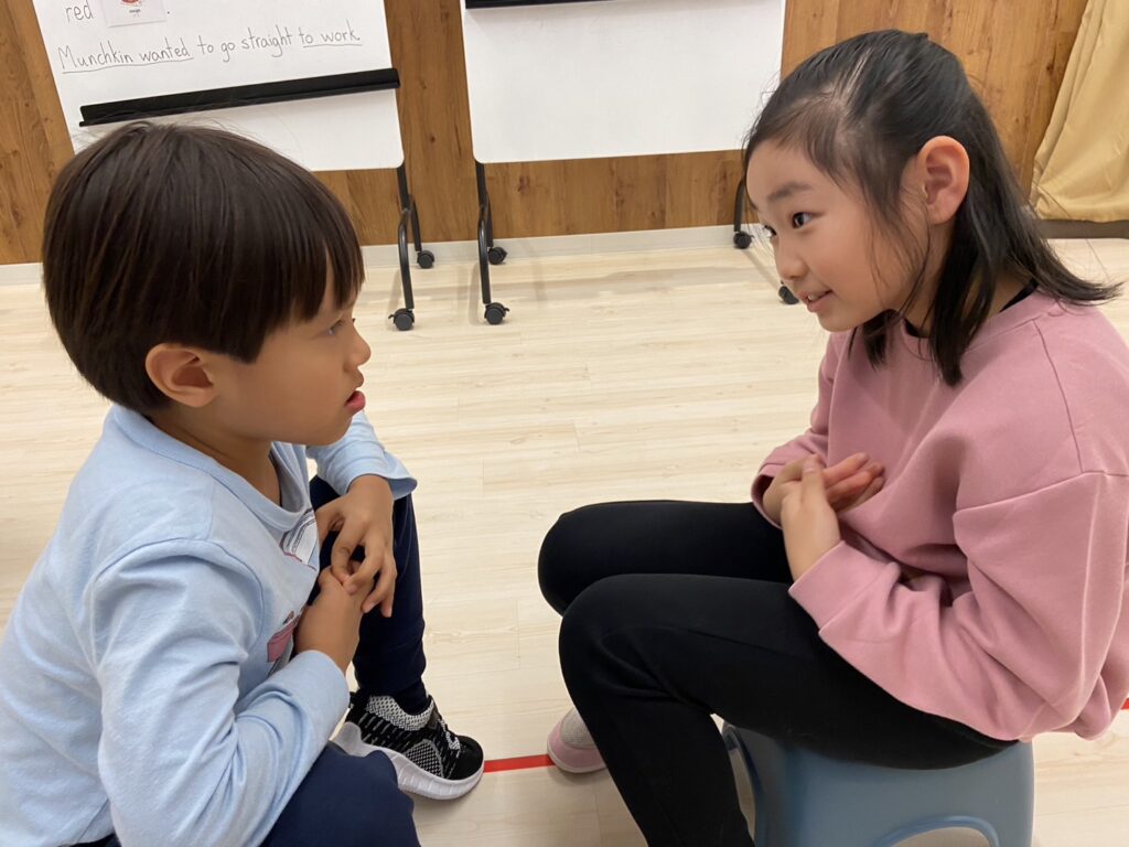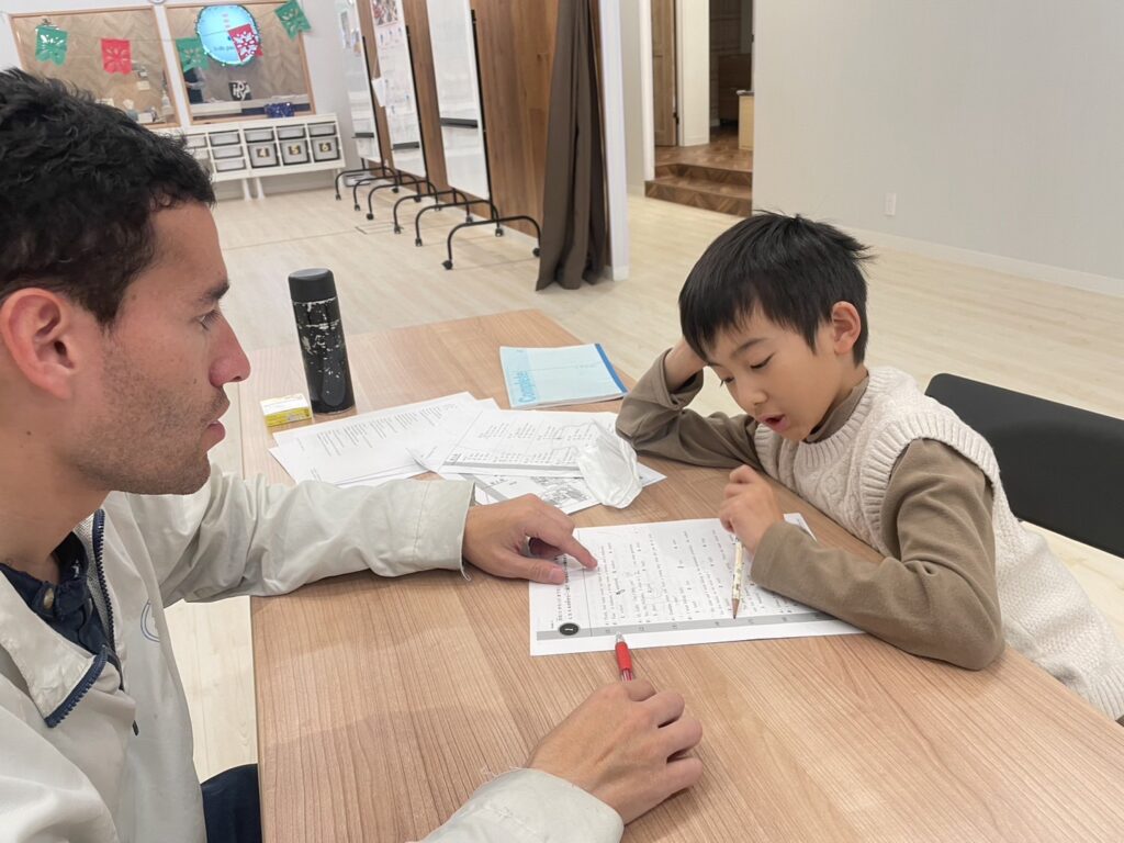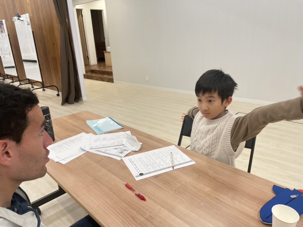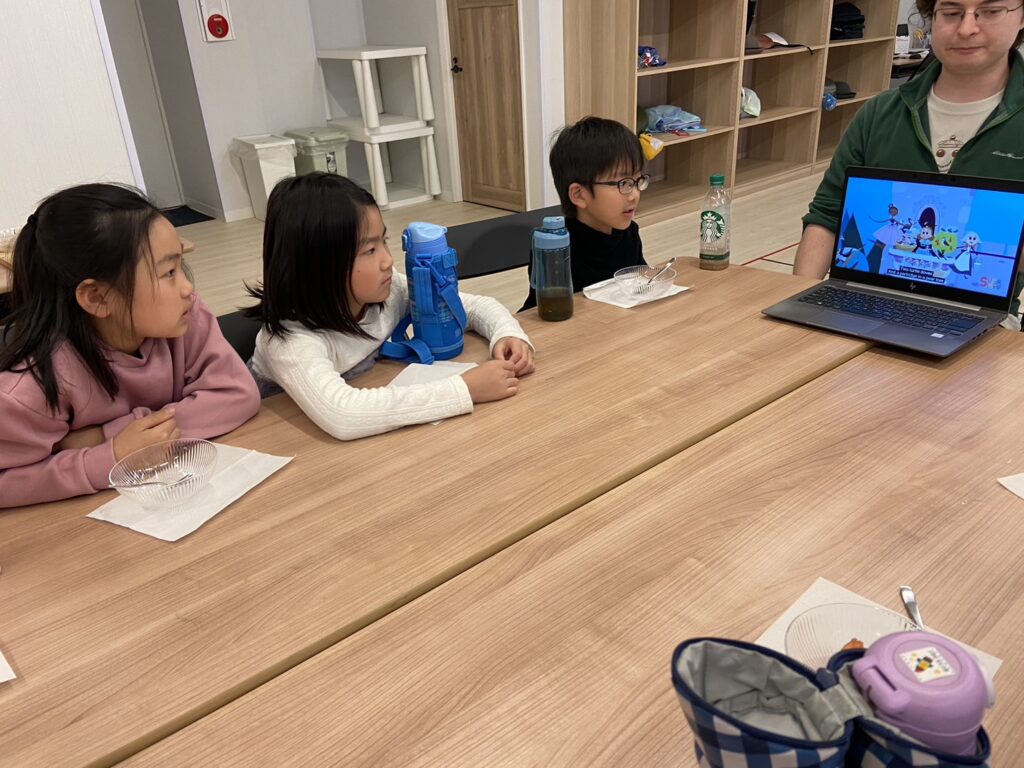 初めはリスニング。先生が演技をしながら読み、子どもは大爆笑でした(笑)