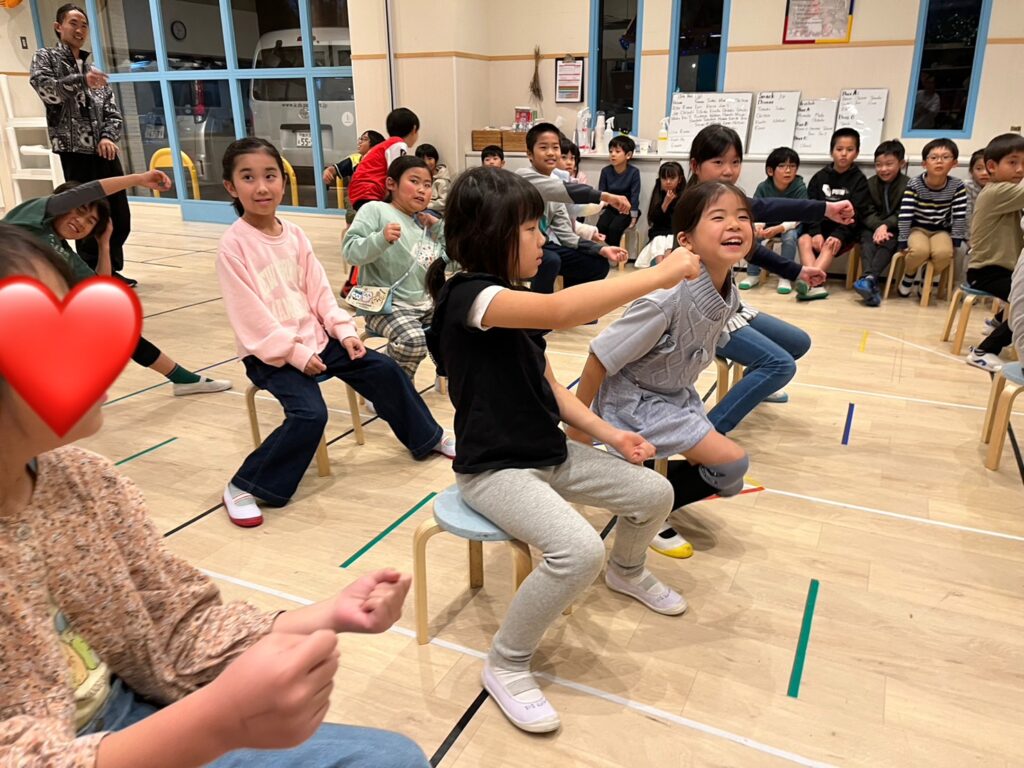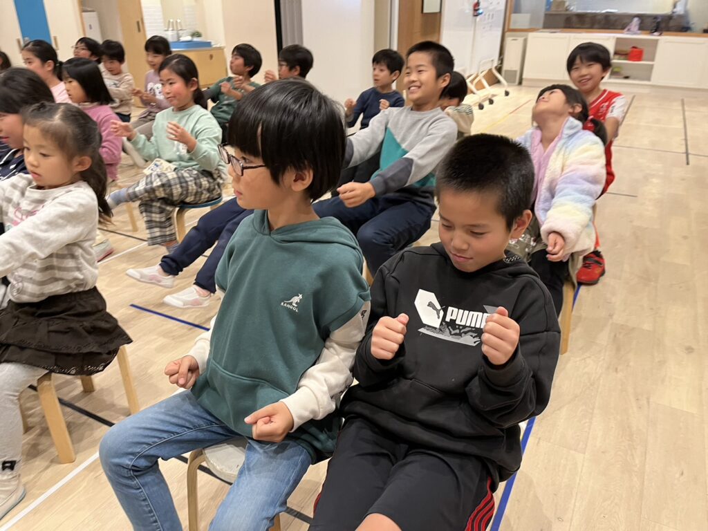 先生の指示を正しく聞き取り、その単語にあった動きをしていきます!