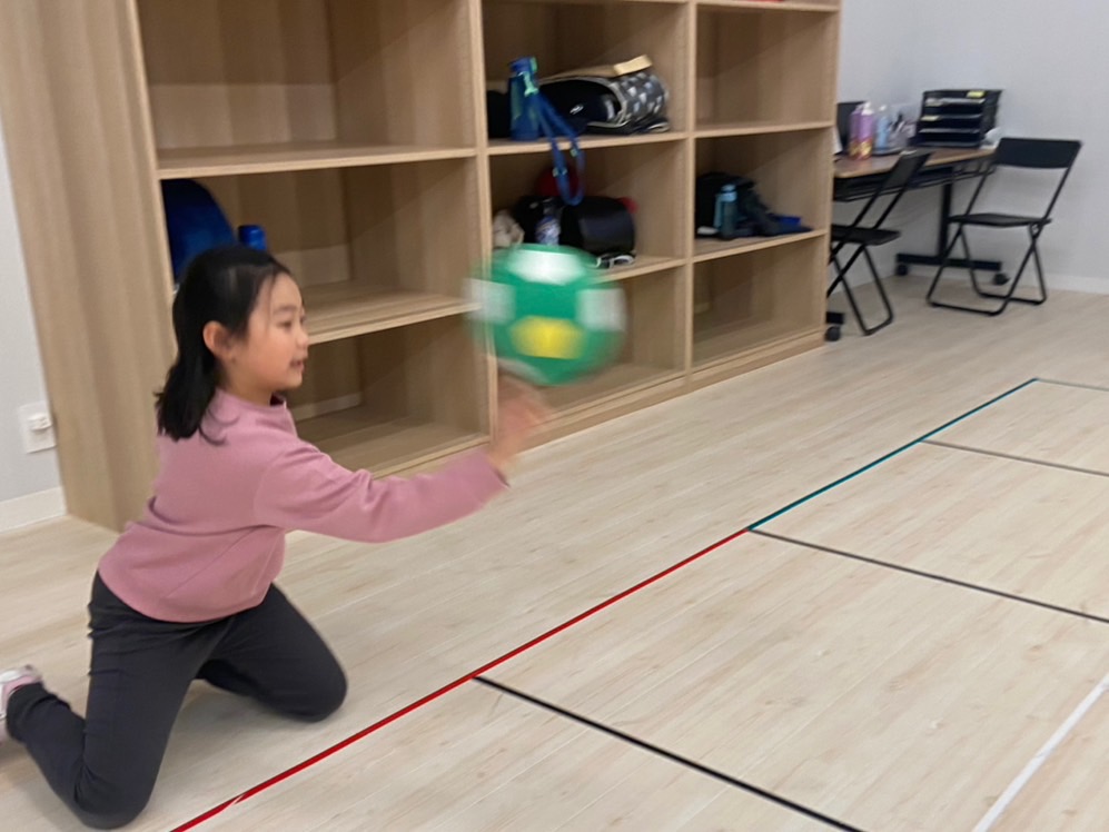 お手玉でボックスを当てるゲームでは、ボーナスポイントととしてお手玉以外にボールをもらい、皆全力!
