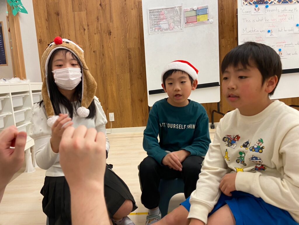 ゲームタイムでは、トナカイの耳を使ってのゲームなど、クリスマス盛りだくさんでした♪