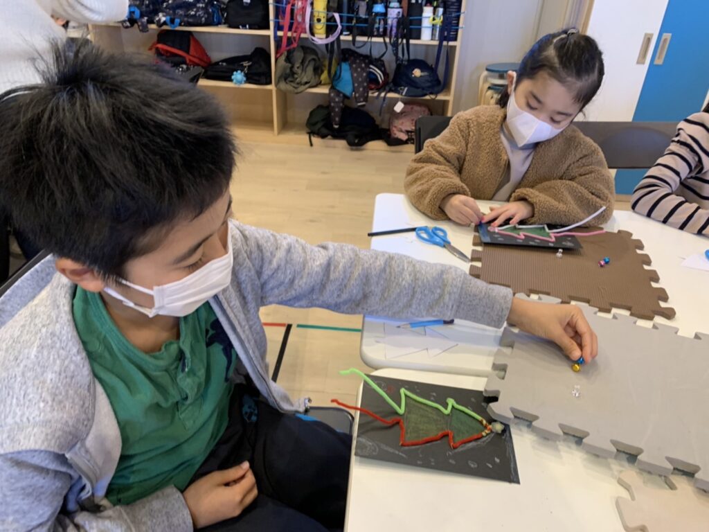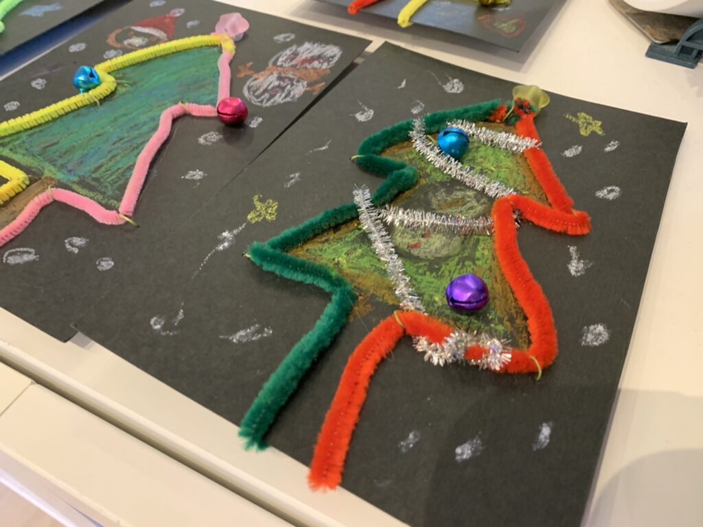 ツリーすべての角に穴を開けてからモールが固定されるように