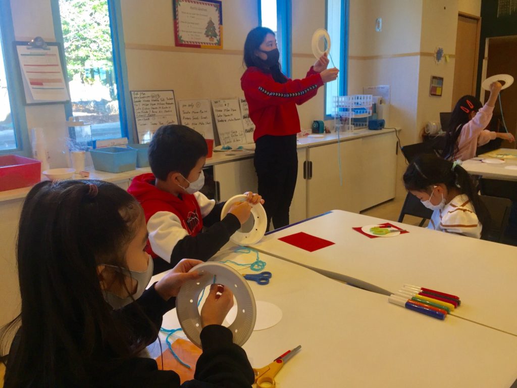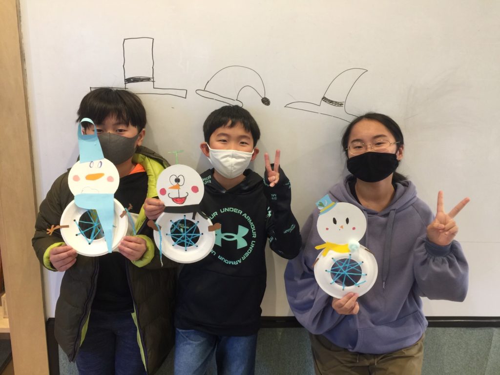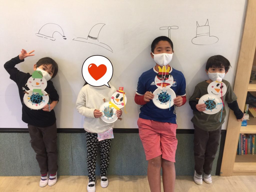今日はウィンタースクール3日目、”Snowman Ornament” (雪だるまのオーナメント)を作りました!