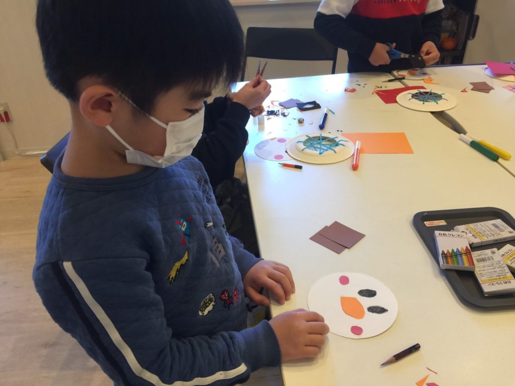 先生からそう声がかかりいよいよそれぞれ雪だるまの顔を作り始めました。