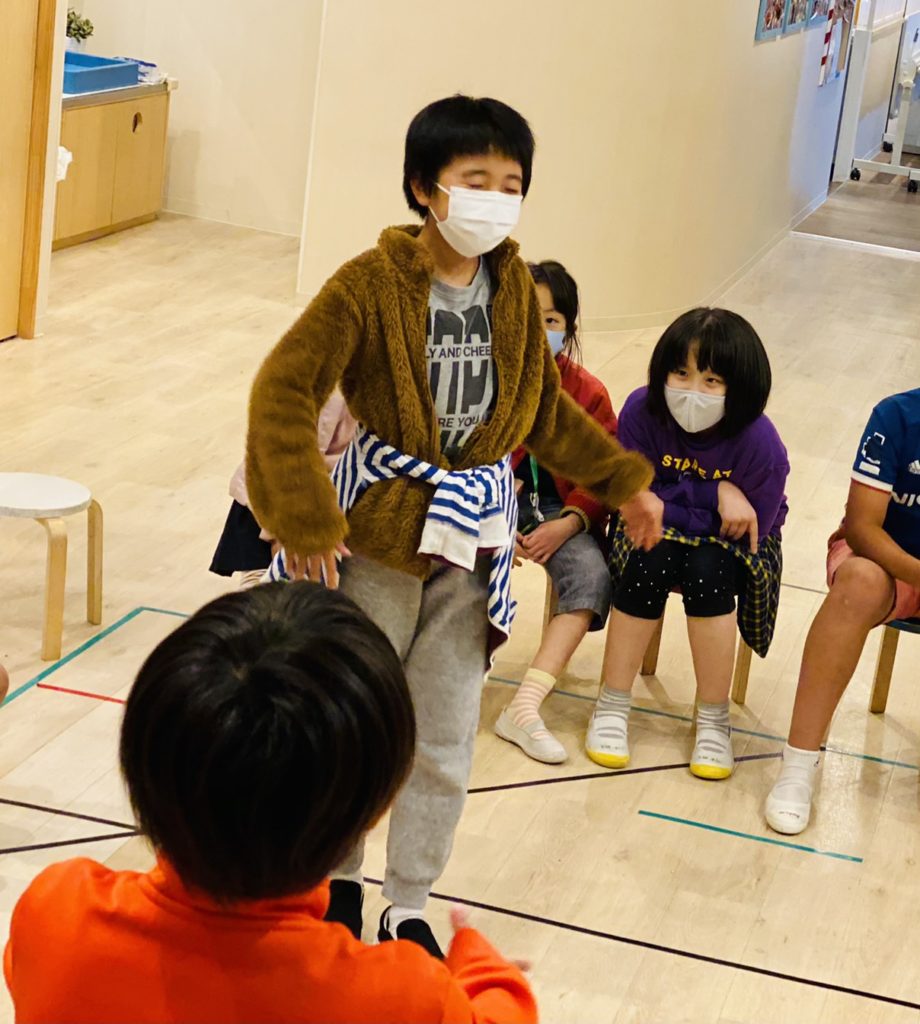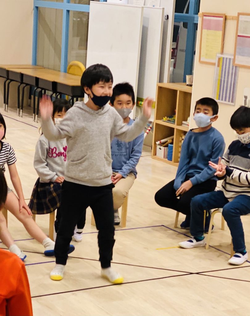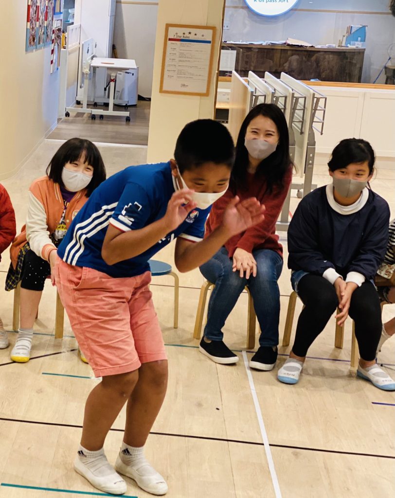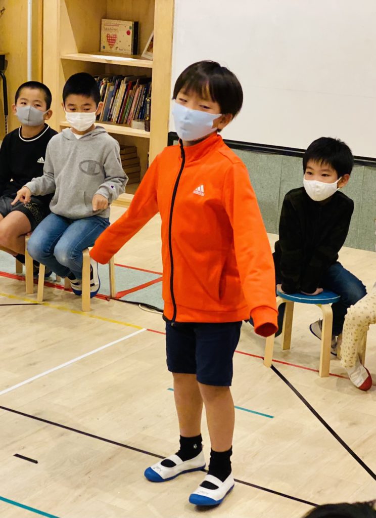 何人かはまだ声が小さかったり、ジェスチャーをつけるのが恥ずかしかったりしてモジモジしていますが、なんどもやるうちに「あれ?恥ずかしくない」ってなるから、諦めずにがんばってね。