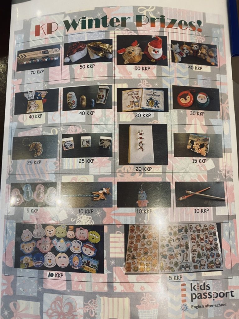 先生たちが休みのたびに、出かけた先でKids will love this as a prize for passport points.(これ、パスポートポイントの景品にしたら子どもたちが喜ぶね)と言って買ってきてくれるアイテムのクリスマスバージョンが今週、登場しました。