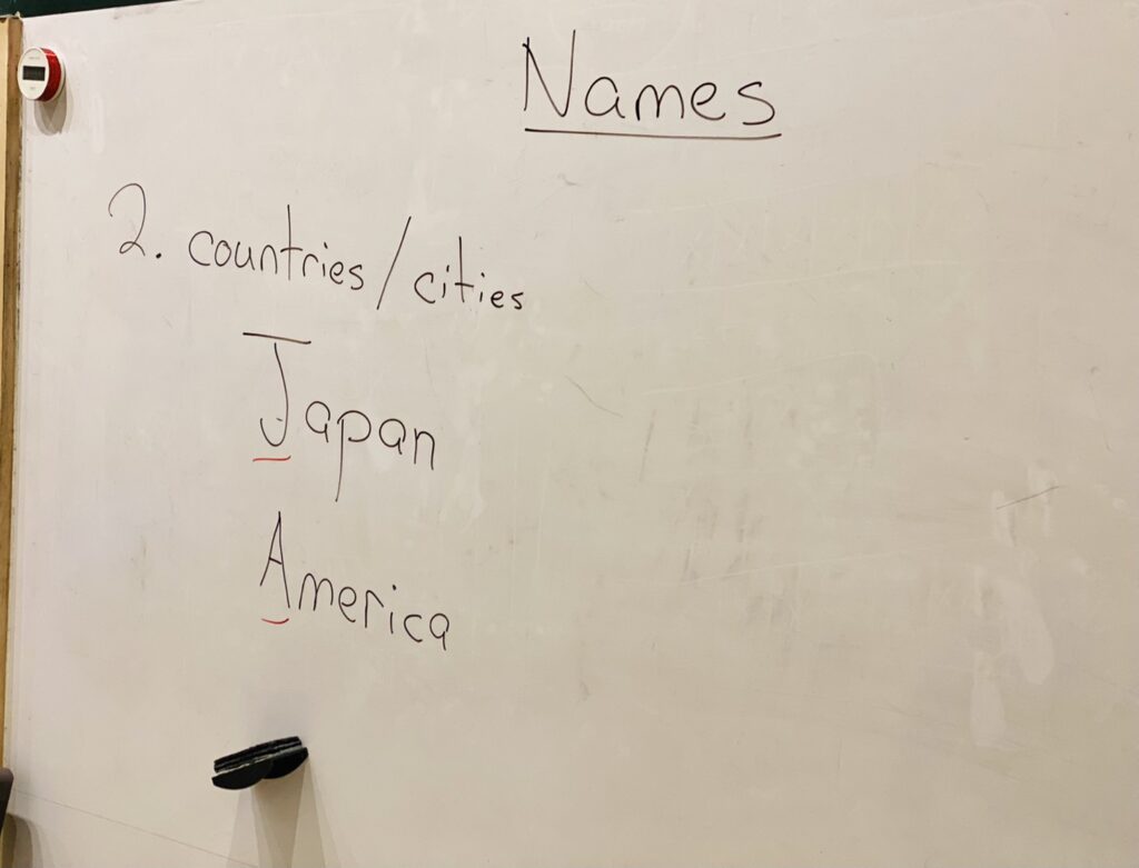 The first letter of names should be capitalized, too.(名前も最初の文字は大文字で書くんだよ)