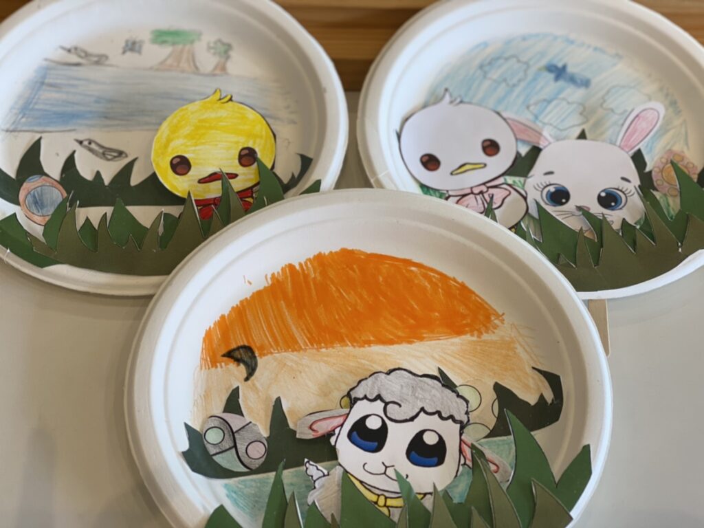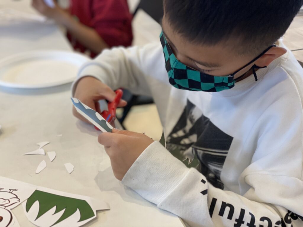 今日の午前イベントは春をイメージした紙にんぎょう作りをしました