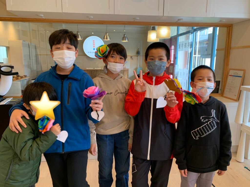 折り紙とモールを使って、カラフルなお花を手作りました!