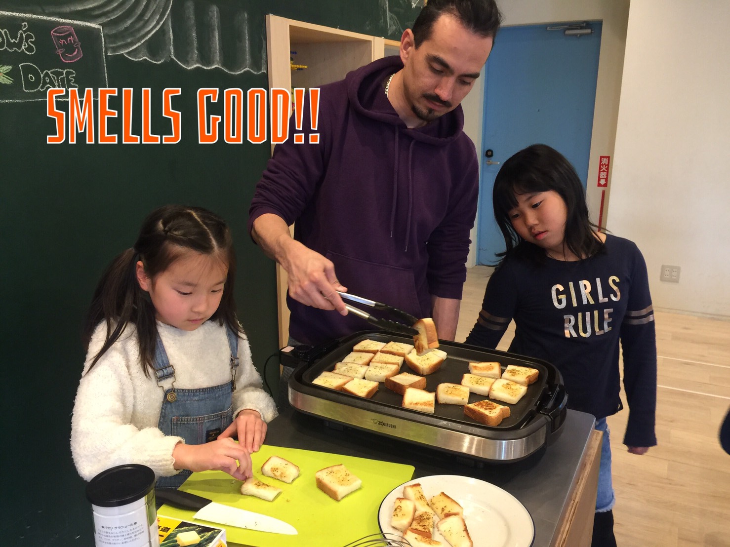 スクールに美味しそうなガーリックとバターの香りが広がってくると、みんなわくわく。