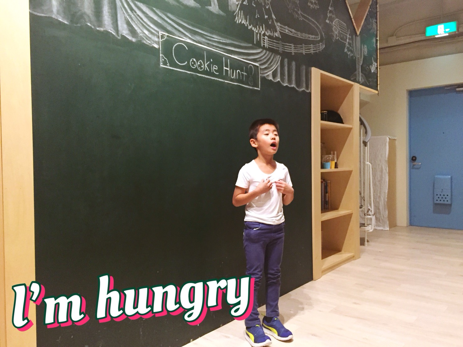 (私の名前はサンタ。おなかが空いたな。クッキーが食べたいな)