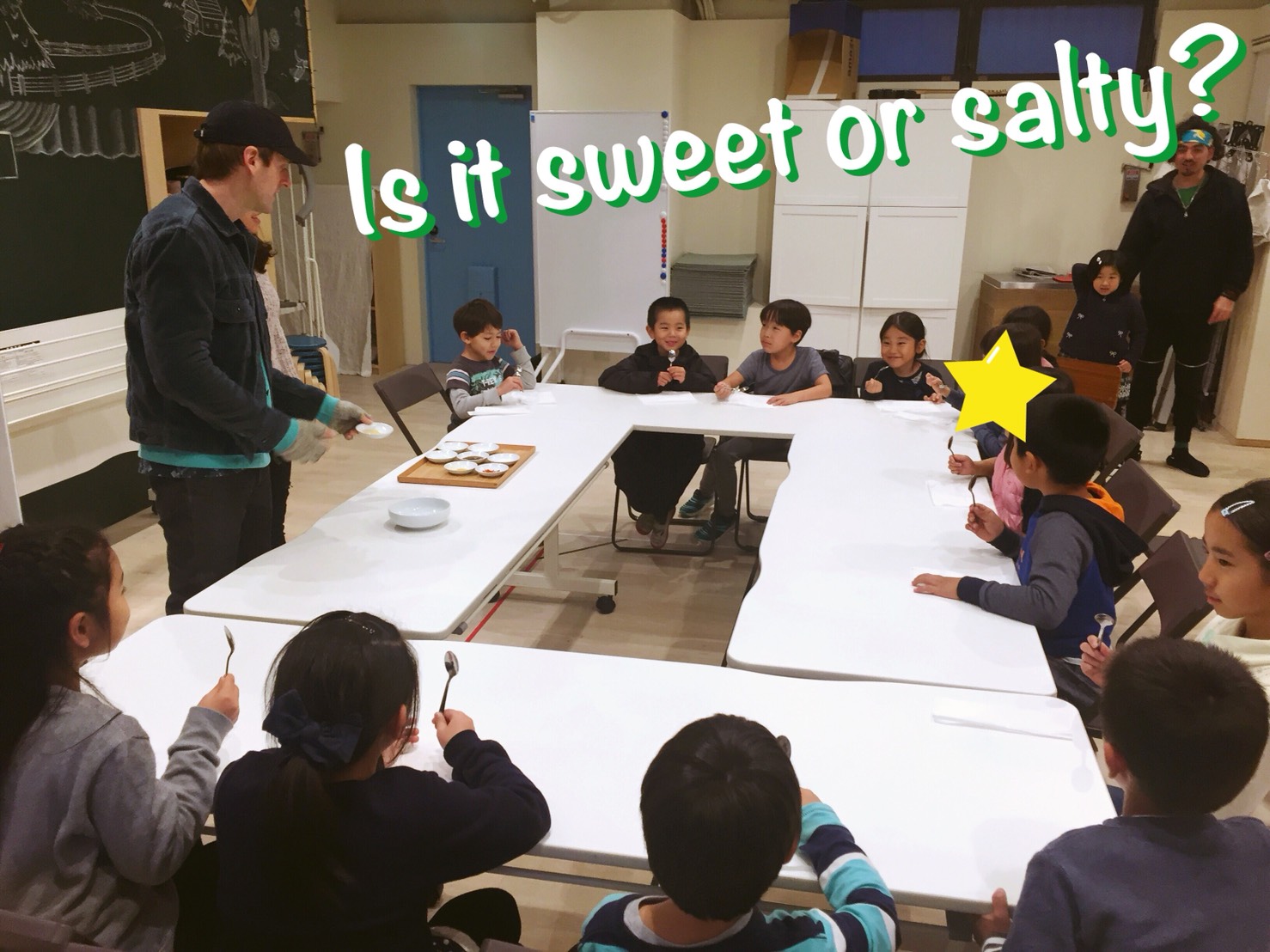 “Workshop”(ワークショップ)の時間は”Taste game”(味覚ゲーム)をやりました。