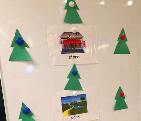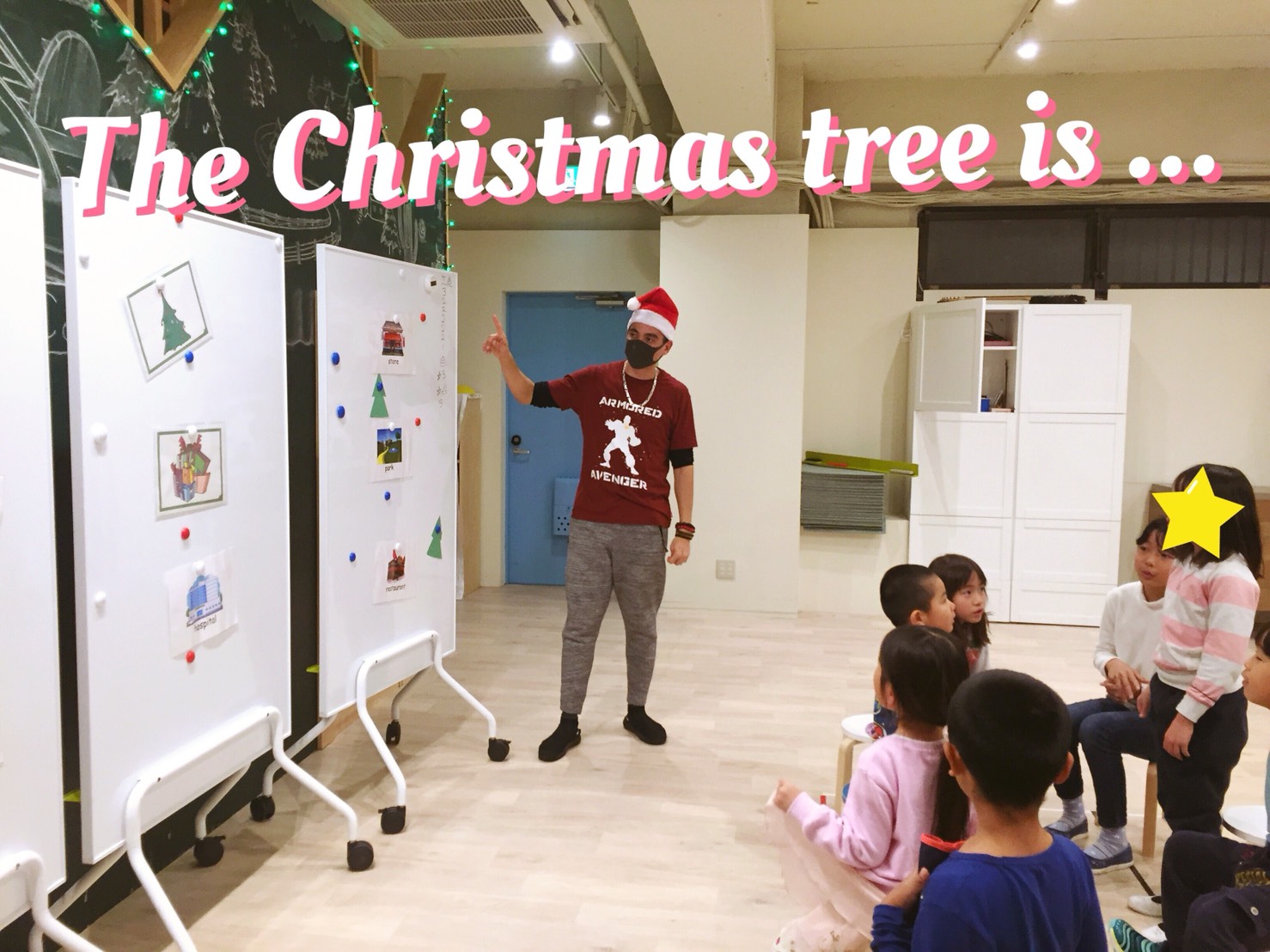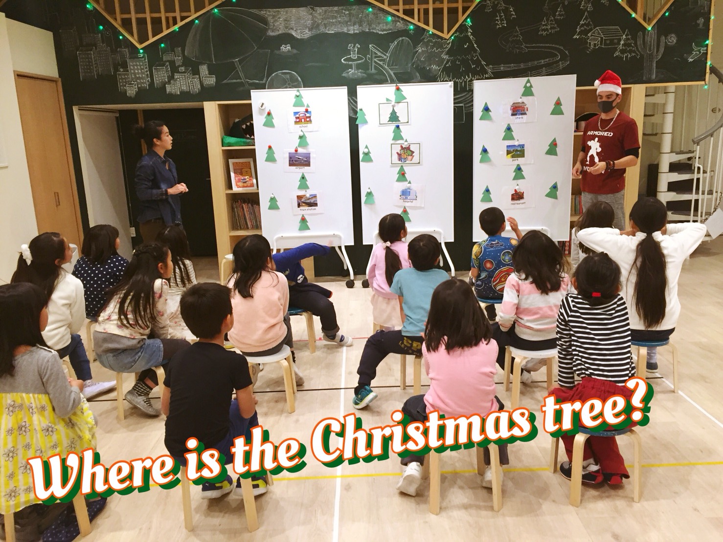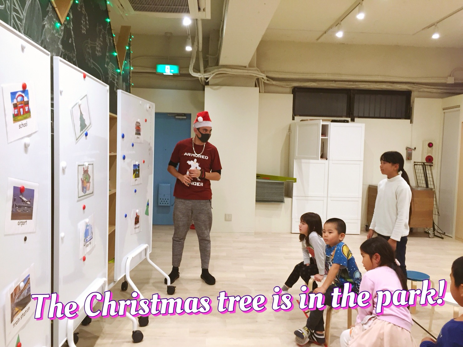 自分たちでセンテンスを使って、クリスマスツリーの場所を指定。