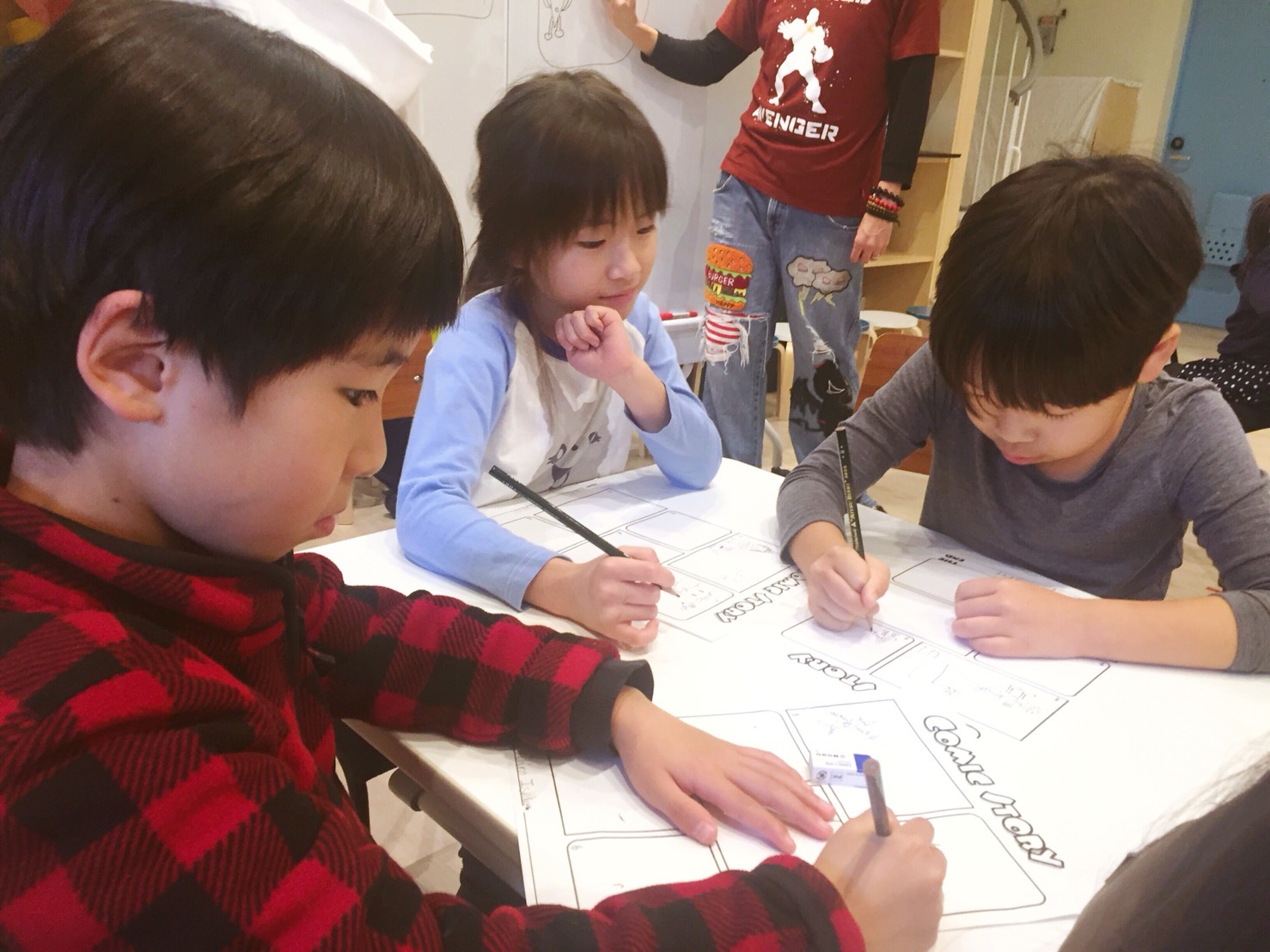 午後のレッスンには映画を観た後だったので、今度は自分たちでストーリーをつくろう!