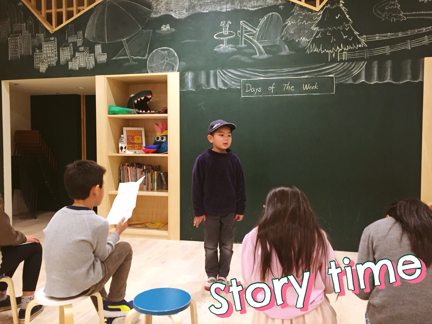 今日の”Story time”(ストーリータイム)は、ストーリーの半分までを練習しました。