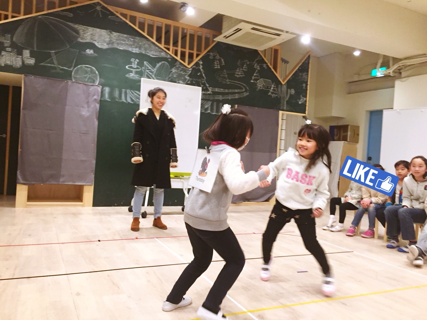 生徒さん:”I’m singing.”(私は歌ってるよ)