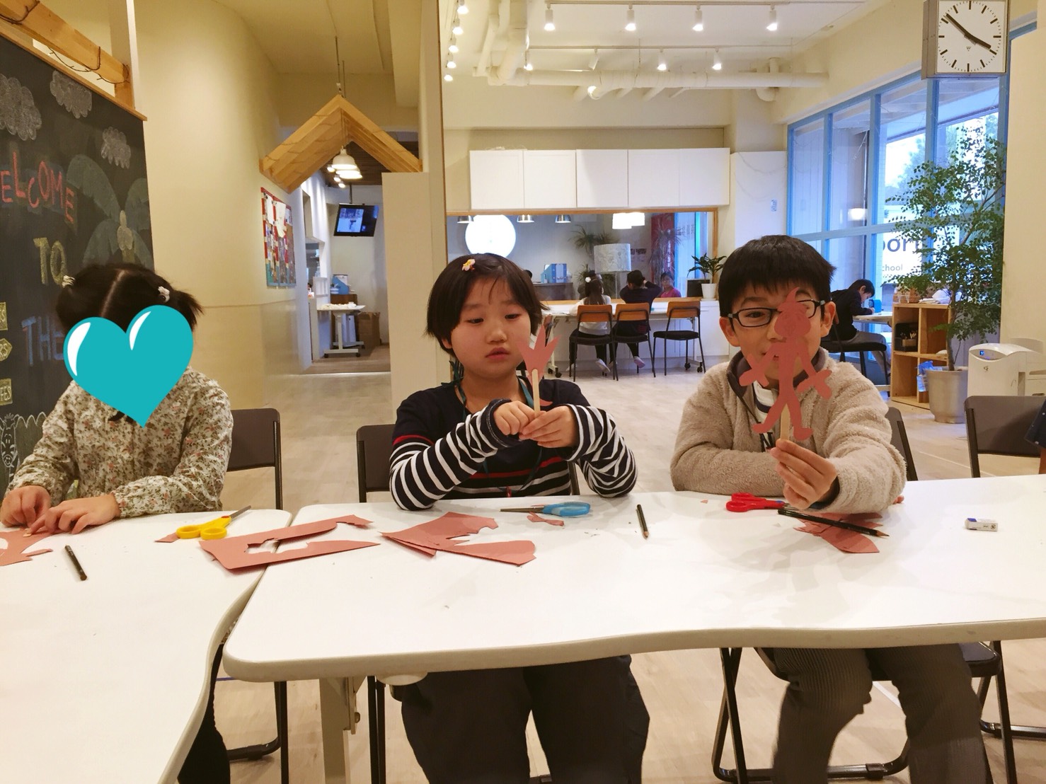 今日は”Workshop”(ワークショップ)の時間に”Arts and crafts”(工作)をやりました。