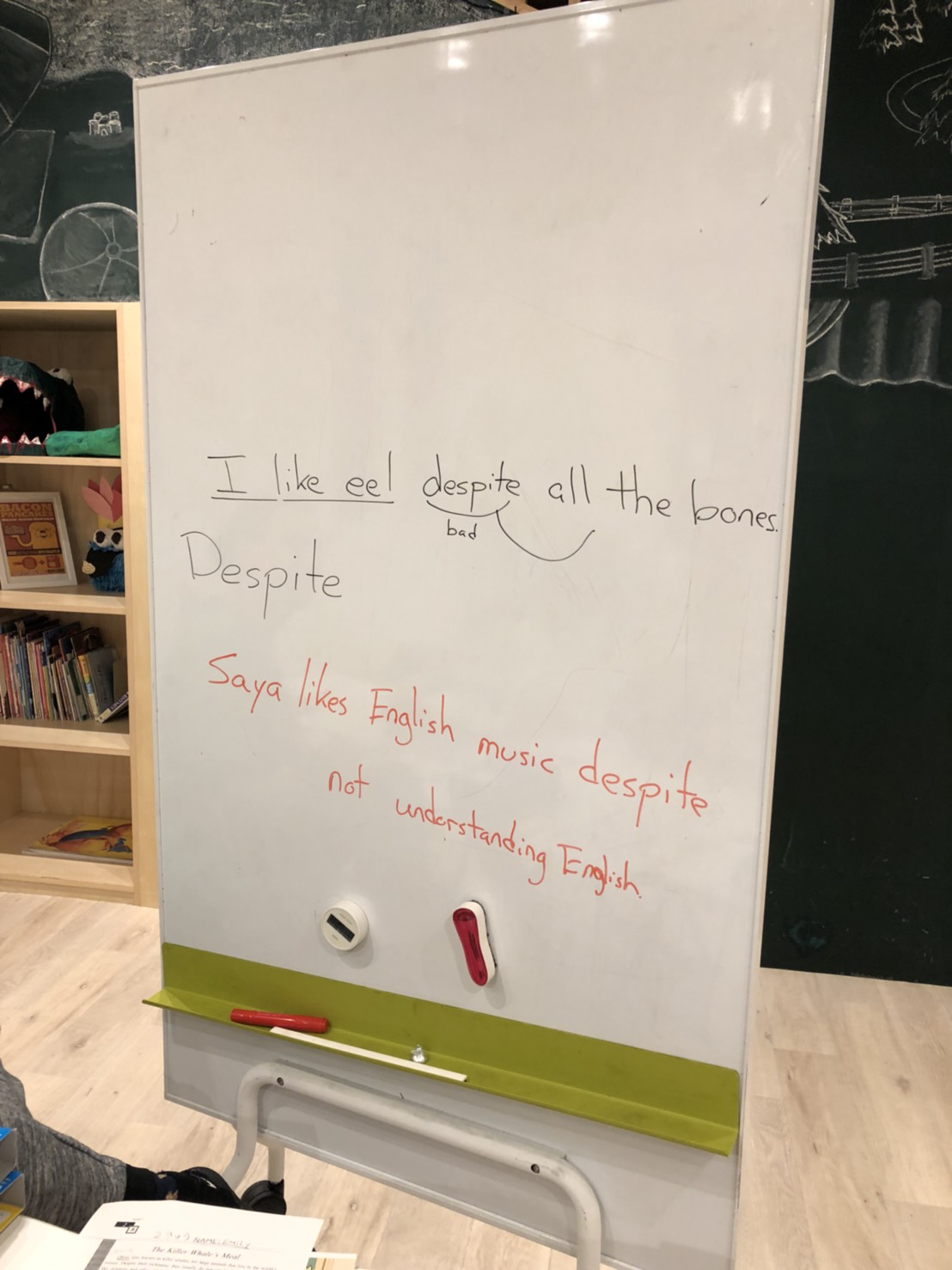 先生:”Which one? Read it to me.”(どれ?読んでみて)