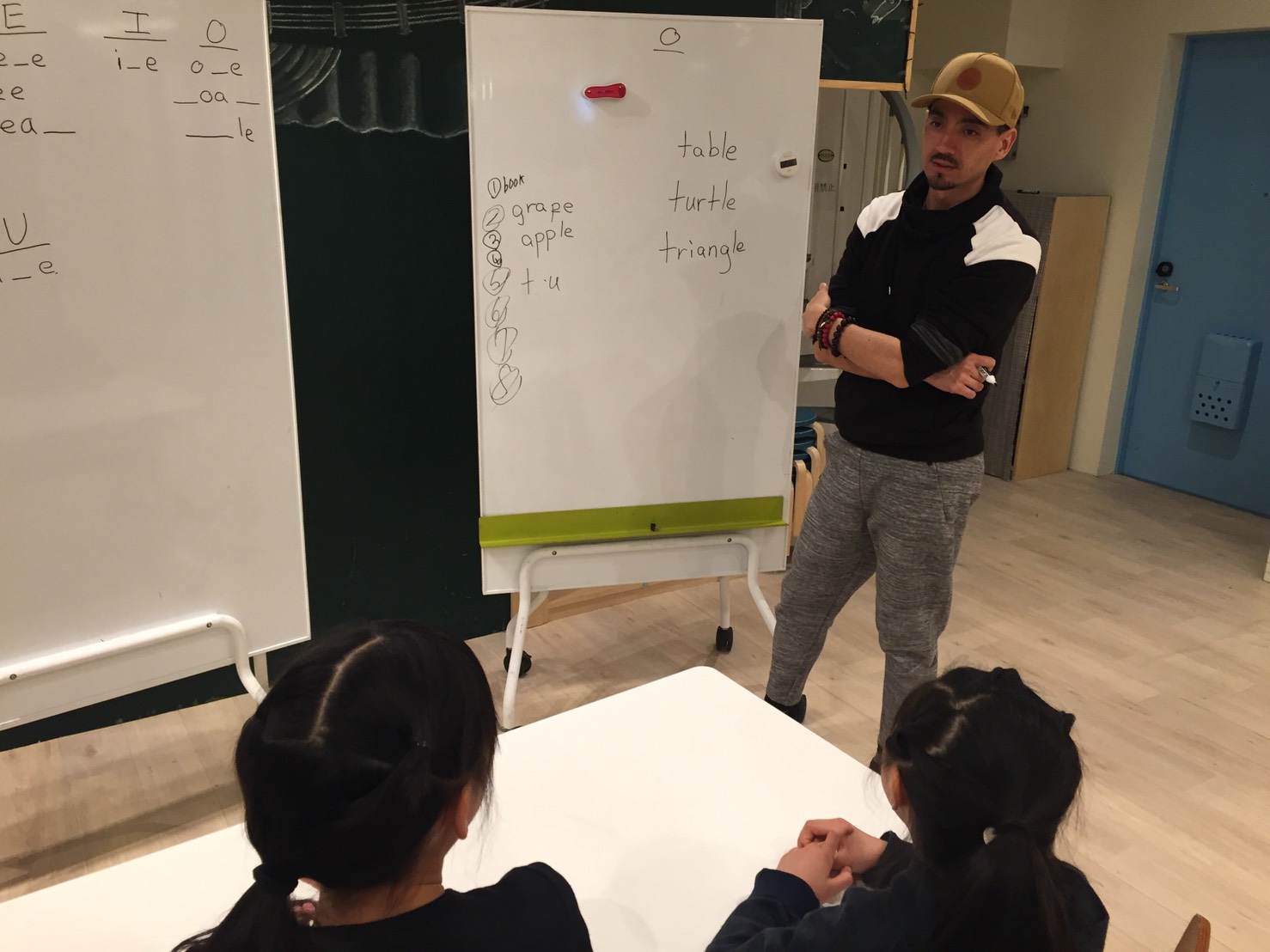 英語の基礎、フォニックスのコンセプトを教えてもらってじっくりと確認をしながら、知っている単語を文字にする感覚の練習をやりました。