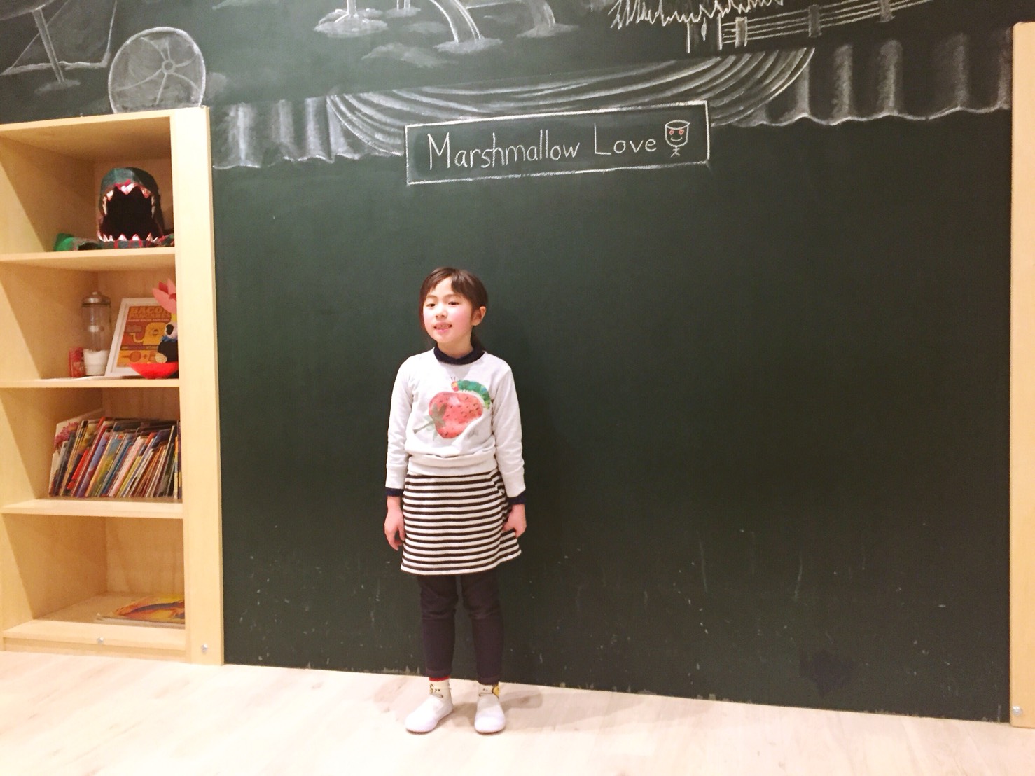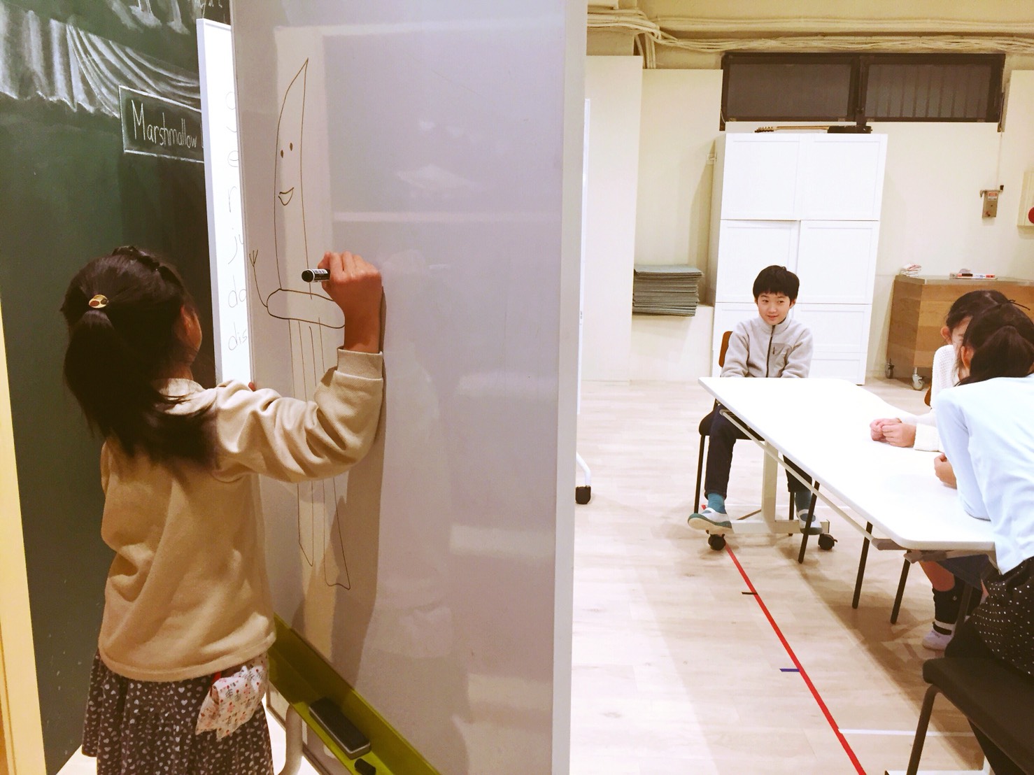 生徒さんが書いた絵をみながら、それをセンテンスで答えていき、見事文法的にも正しいセンテンスで答えられたらマシュマロゲットです!