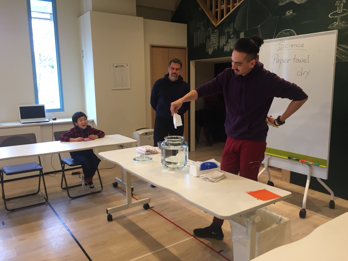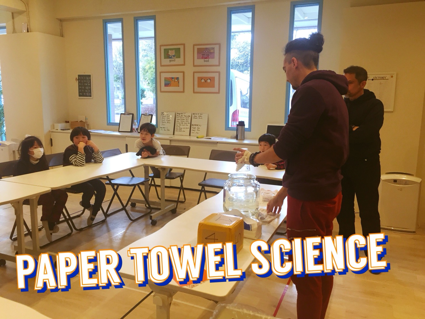 今日は”Workshop”(ワークショップ)の時間に”Science”(サイエンス)で”Paper towel science”(ペーパータオル実験)をやりました。