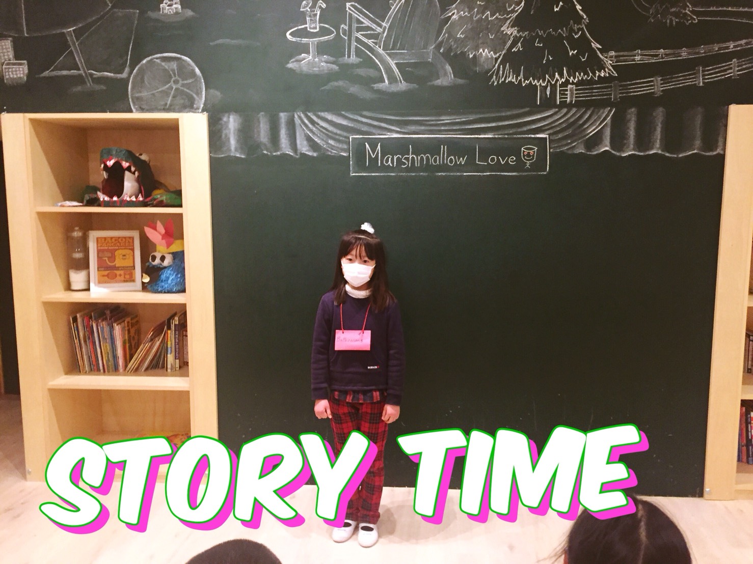 “Story time”(ストーリータイム)には、たくさんの生徒さんがみんなの前に出て”Marshmallow love”(マシュマロの恋)を披露してくれました。