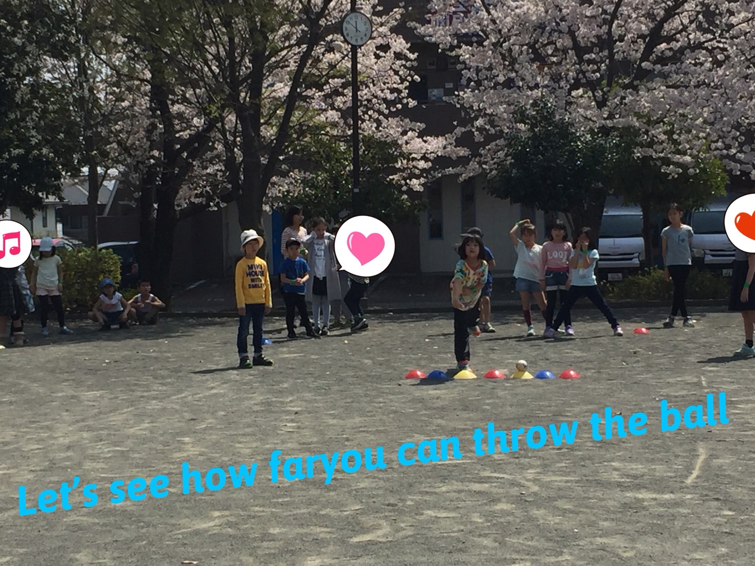 “Throw the ball as far as you can.”(ボールを遠くまで投げて)