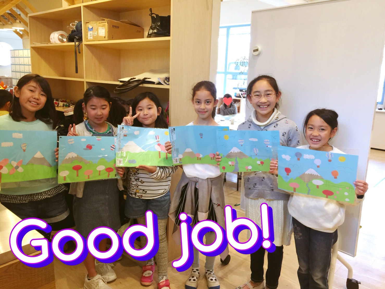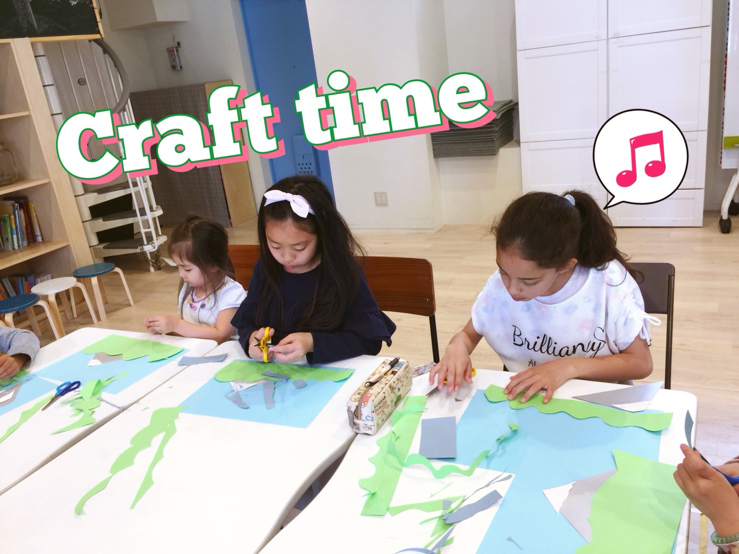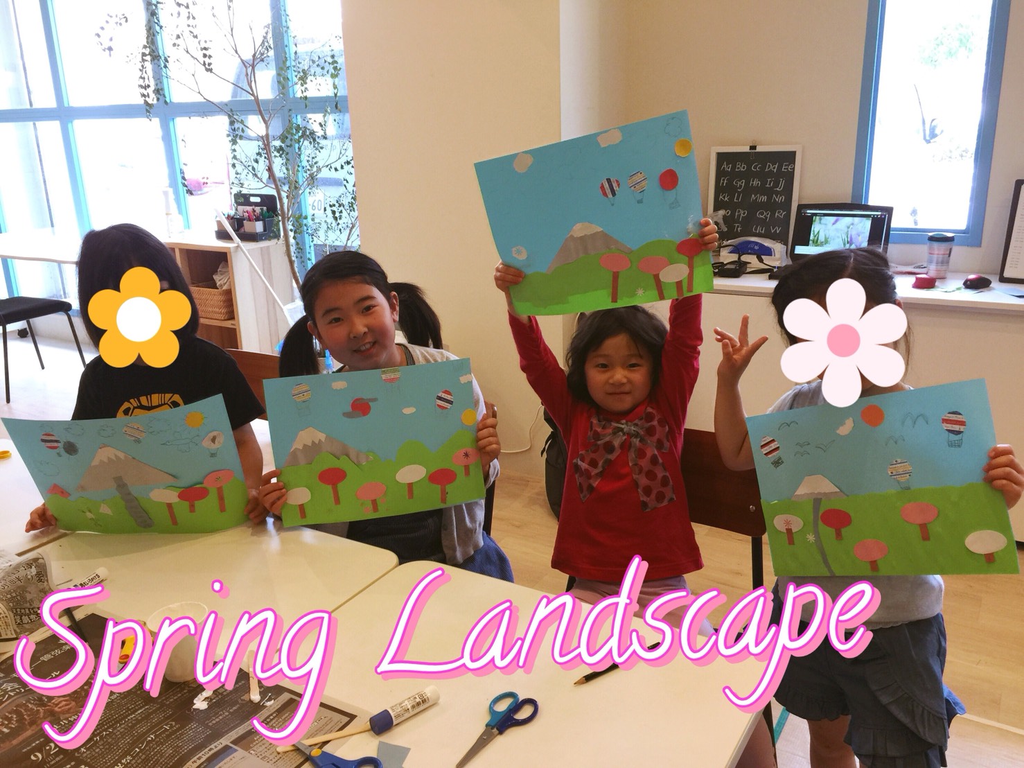 スプリングスクール7日目の今日は”Arts and Crafts”(工作)で”Spring landscape”(春の景色づくり)をやりました。