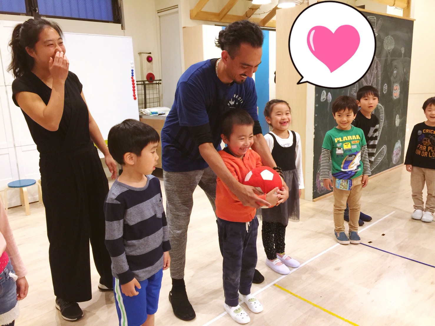 単語を当てるカードゲームやボールを投げながら単語を言うゲームなど、少しずつ慣れて最終的には大笑い!
