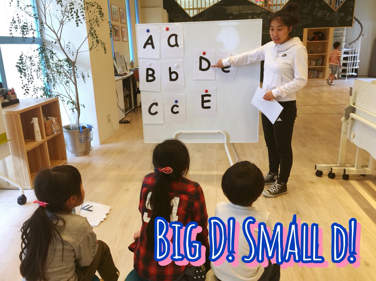 先生:”Very good. Is it big A or small a?”(良くできました。大きいAかな?小さいaかな?)