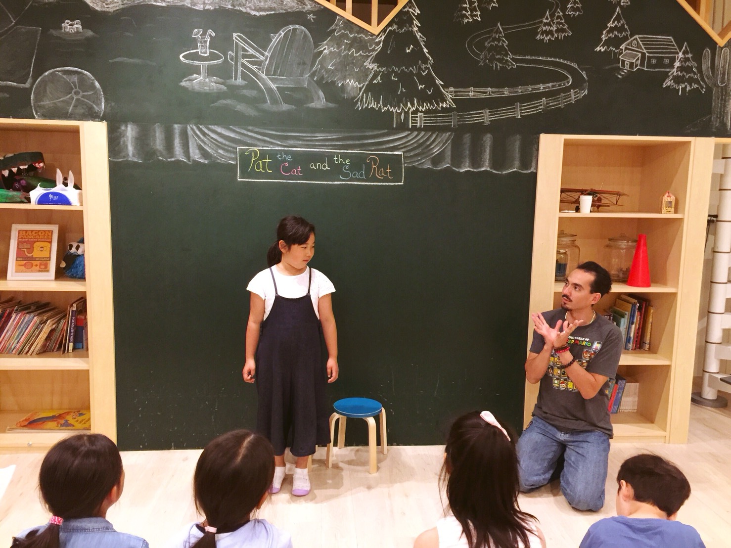 “Okay! We are going to do it with two words next.”(オーケー!次は2つの単語でチャレンジするよ)
