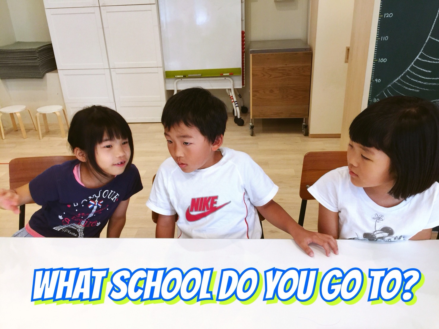 “What school do you go to?”(どの学校に行ってるの?)“I go to ____ school.”(○○校に行ってるよ)