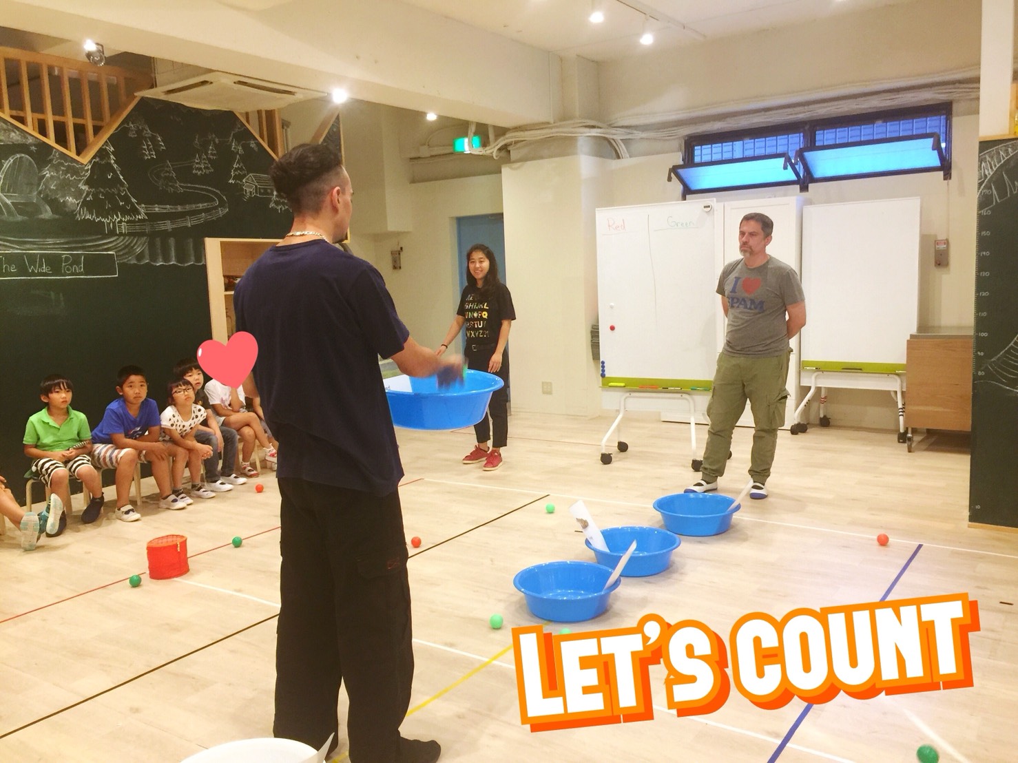 スピーチコンテストのお題にもなっている「The Wide Pond」にでてくる単語を使いゲーム形式で学んでいきました。今日は体験生も来て一緒に英語ゲームを行いました。Flog,Scorpion,Pond,Tail,Bridge,Lightning bolt…