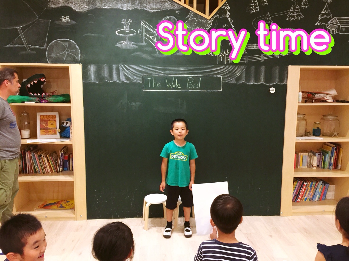 その後はストーリータイムの練習をしました。今日は先輩生徒さんがいつも発表をするので、新しい生徒さんも1文でもいいから発表してごらん!という声に勇気を出して手をあげて発表をしてくれました!Good Job!!