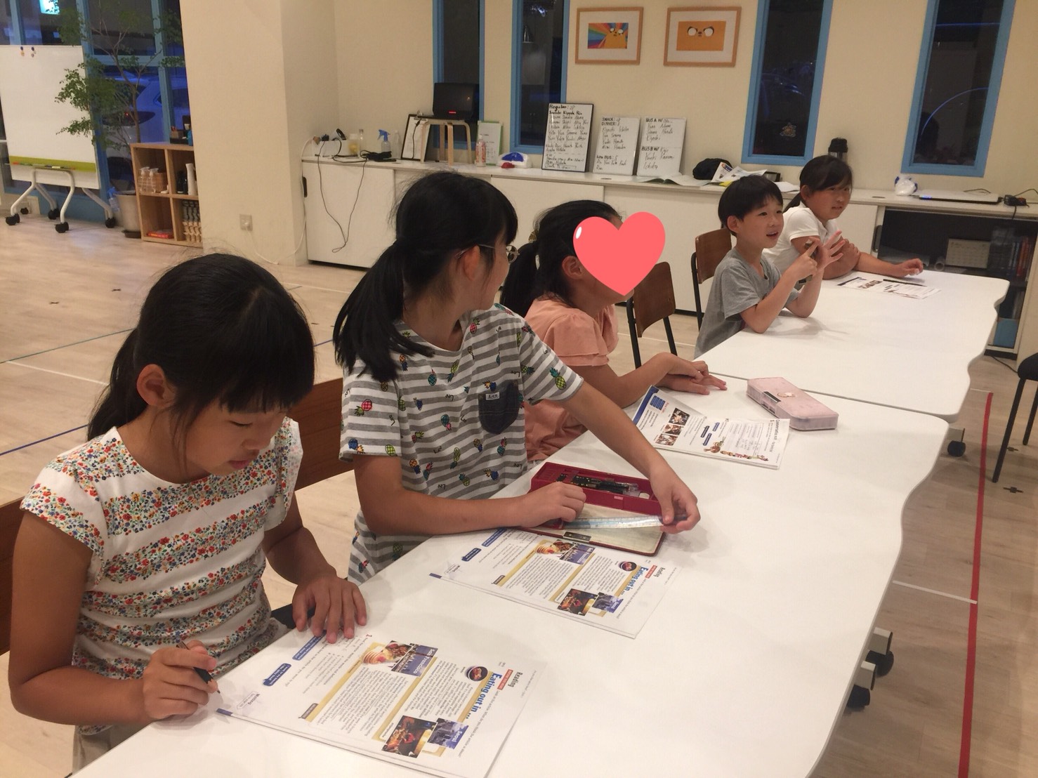 先生:”Good job! Hi-five!”(よく出来ました!ハイタッチ!)