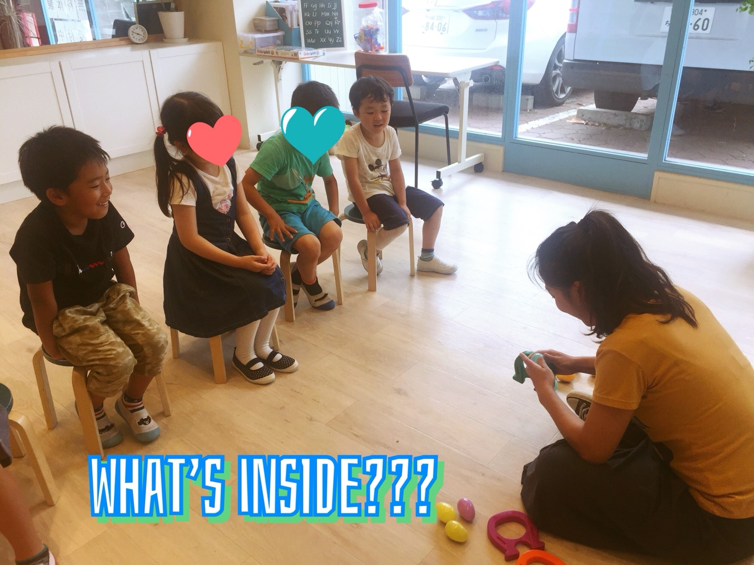たまご型の容器をたくさん用意してくれていたキャスパー先生先生:“What are these?”(これはなに?)