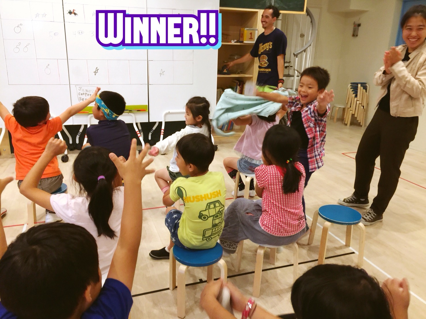 スナックタイムの後は、今月のストーリー「The Stranger」に出てくる単語をつかったゲーム。バトルに勝つには、単語力と運が必要!勝ったチームは大盛り上がりでしたね。