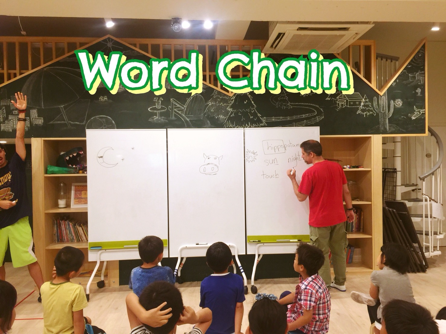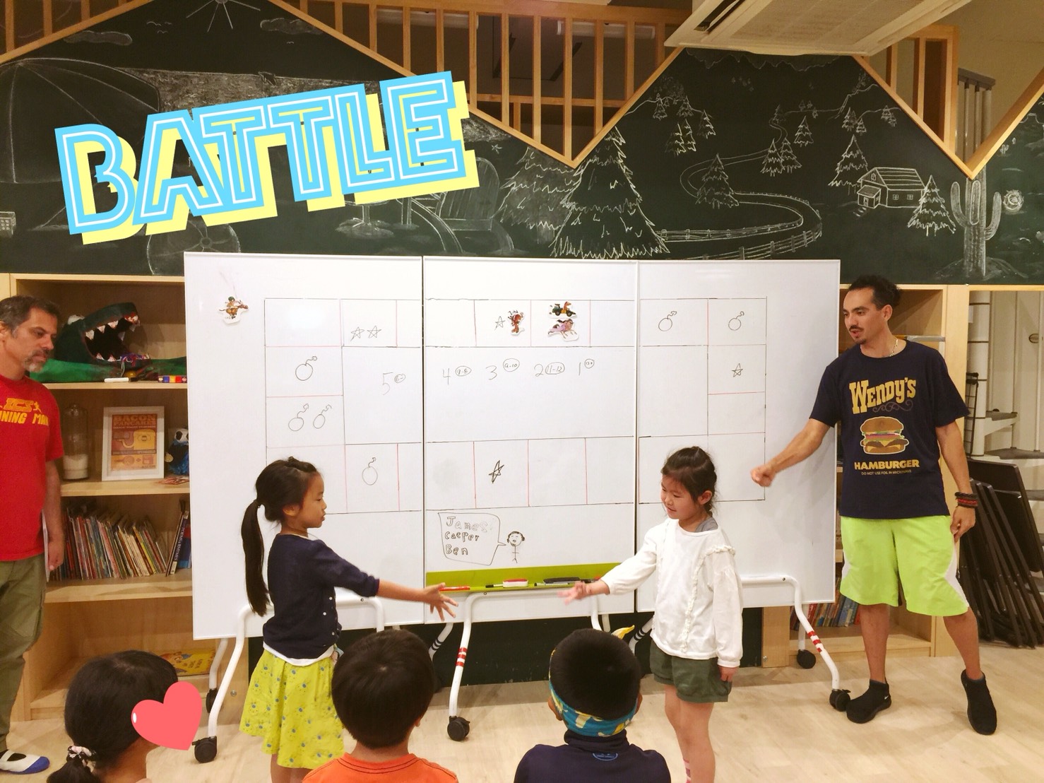 スナックタイムの後は、今月のストーリー「The Stranger」に出てくる単語をつかったゲーム。バトルに勝つには、単語力と運が必要!勝ったチームは大盛り上がりでしたね。