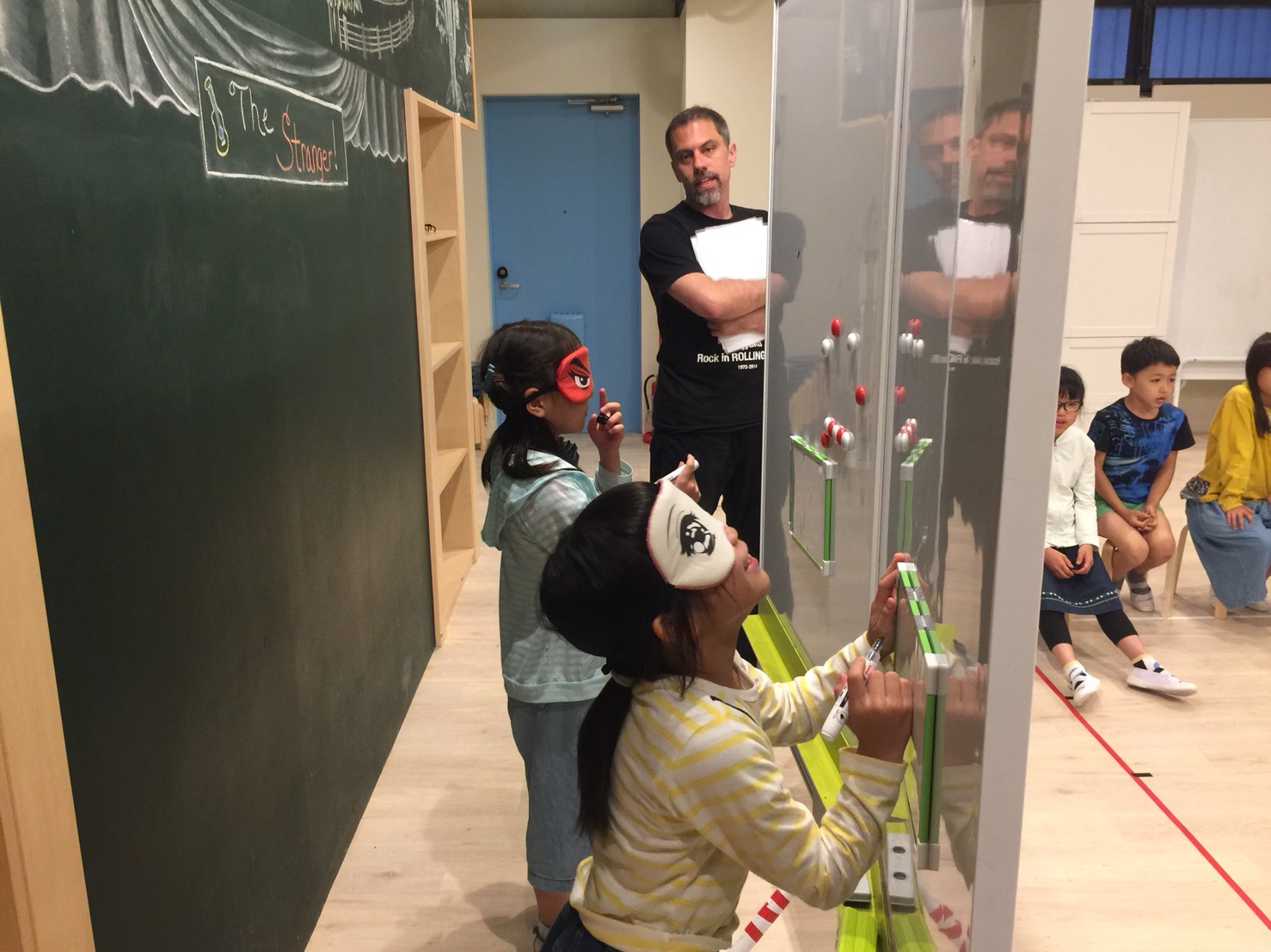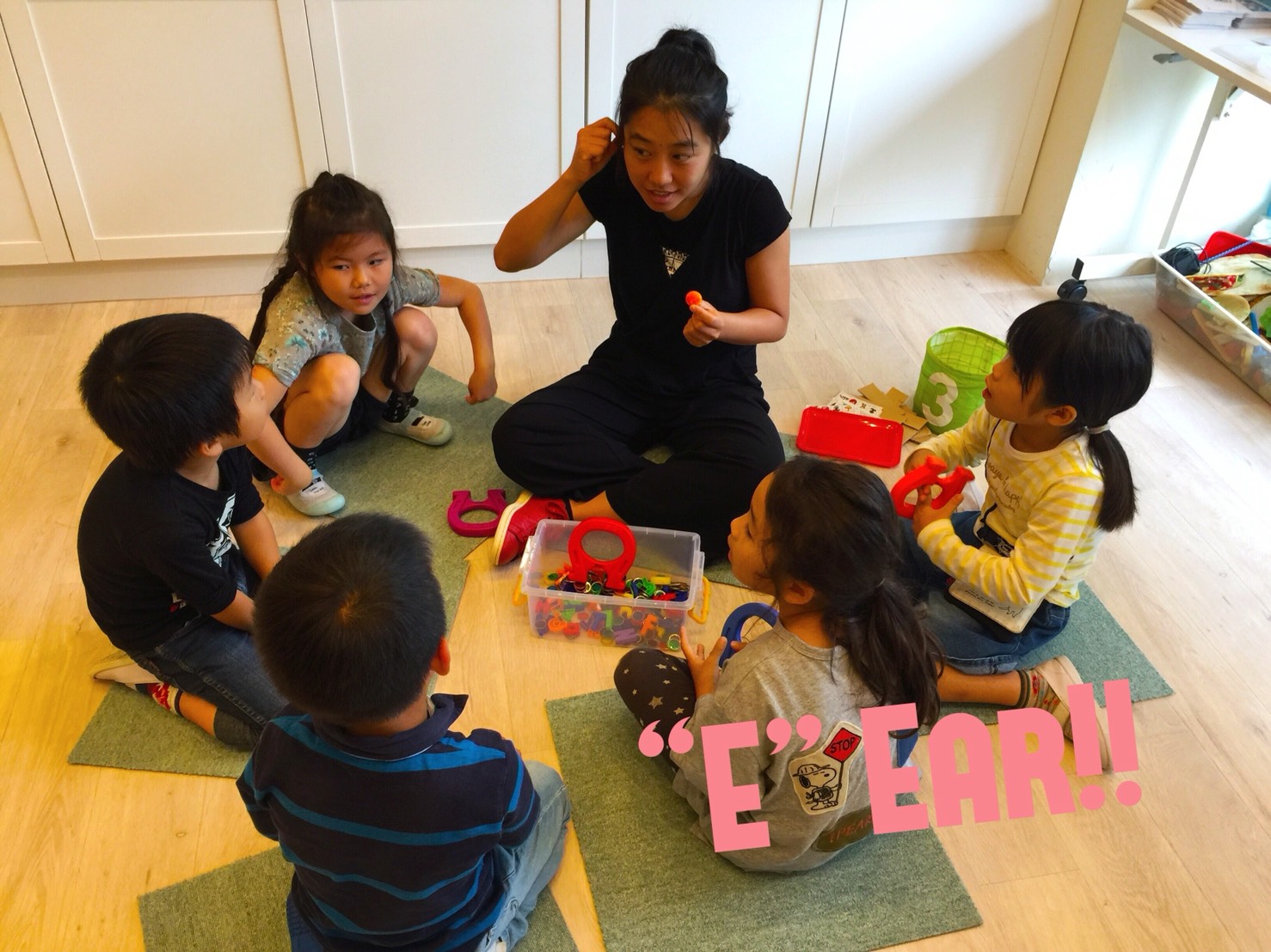 新しい生徒さん達はキャスパー先生と一緒にアルファベットの大文字と小文字のゲームや食べ物の単語を練習しました。