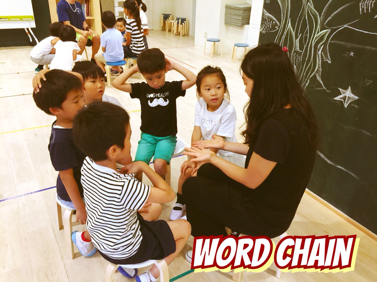 今までは”Who wants to try?”(トライしたい人?)と言われて手をあげた生徒さん達を優先に前に立ってストーリーを披露してもらっていました。