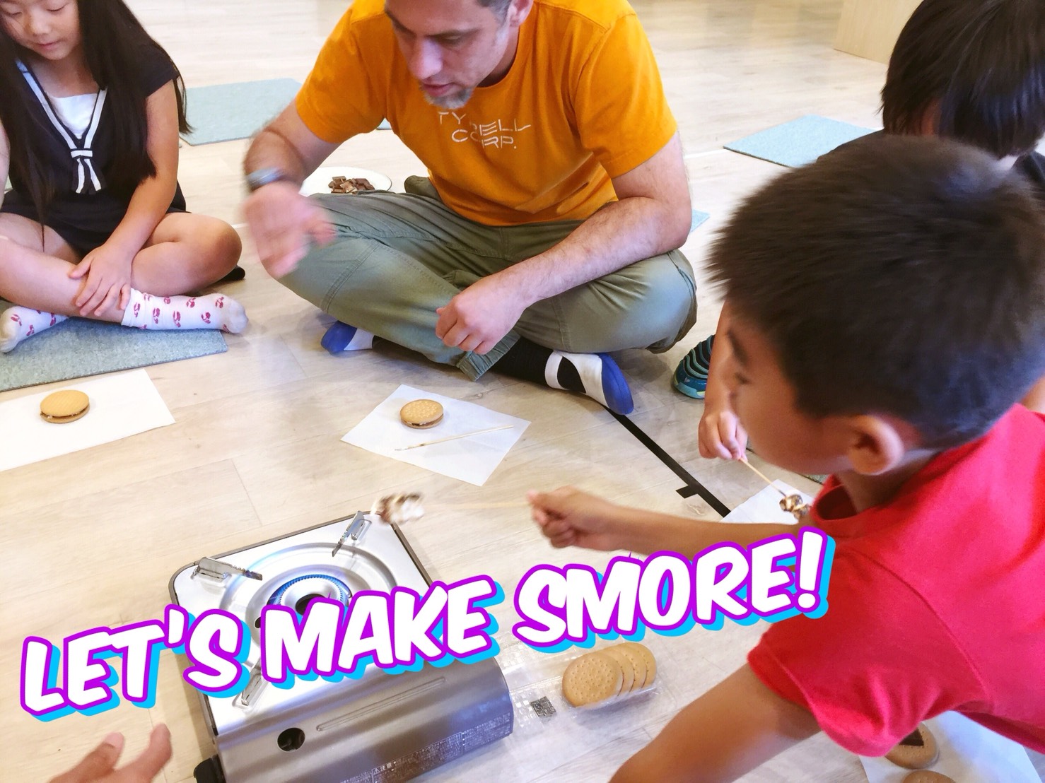 海外でのキャンプの定番“S’more”(スモア)のクッキングタイムでした!はじめて食べる生徒さんもいたようでしたが、マシュマロが溶ける様子と香ばしいに匂いに誘われてたくさん食べました!