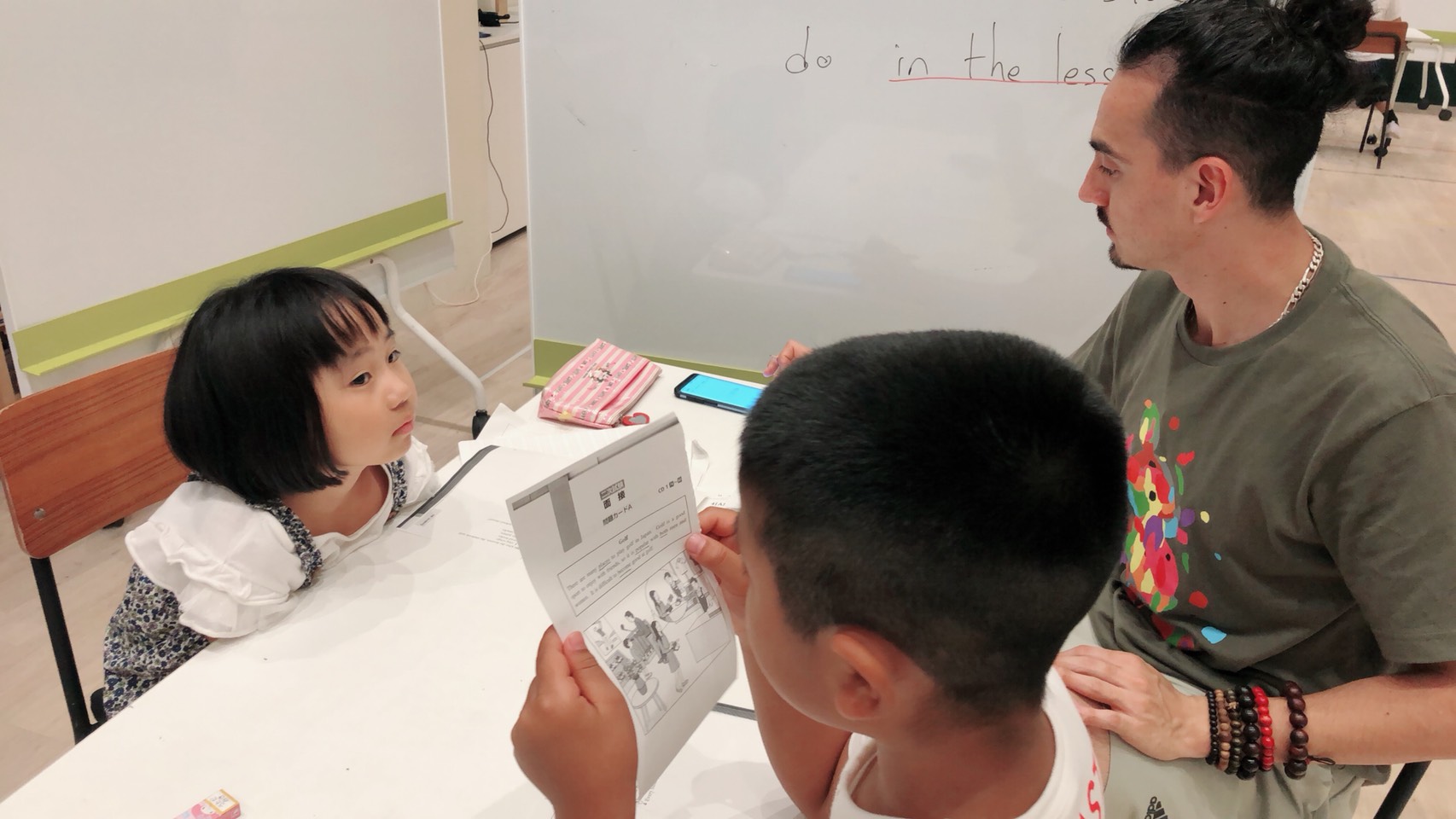 先生:“Do you have the water bottle?”(水筒持ってきた?)