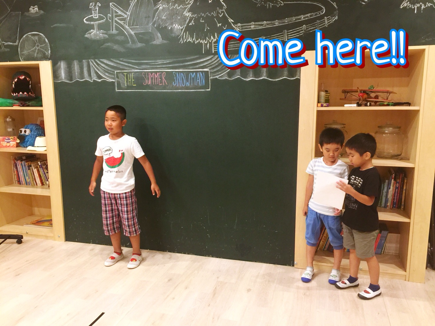 先生:“Do you have the water bottle?”(水筒持ってきた?)