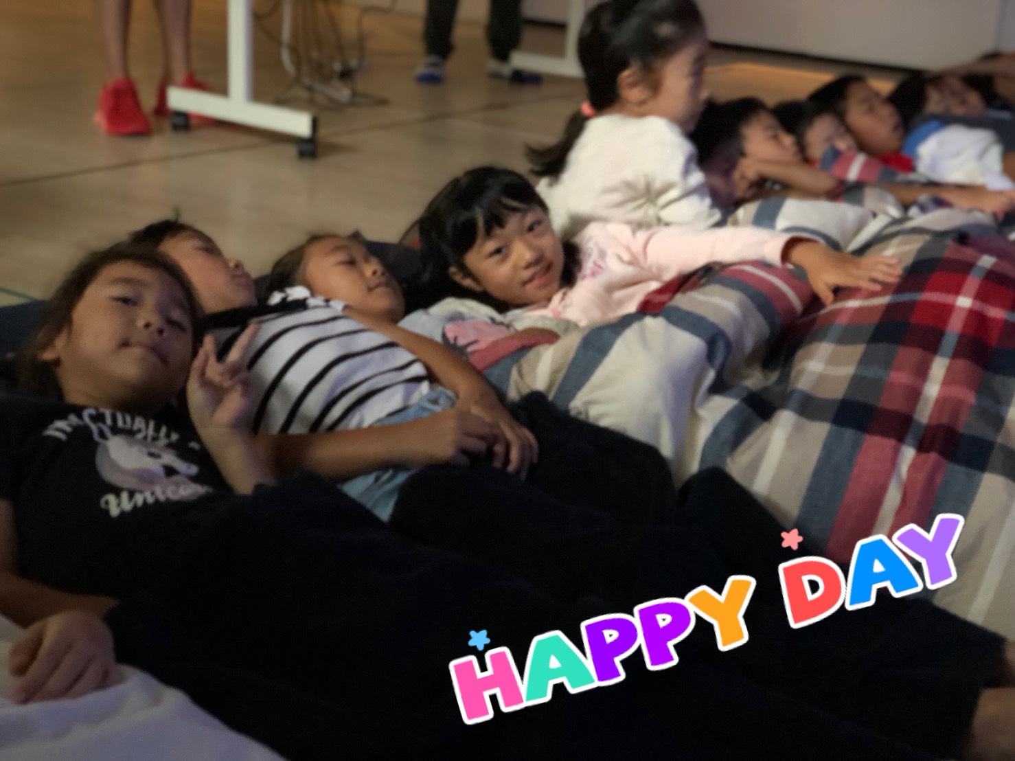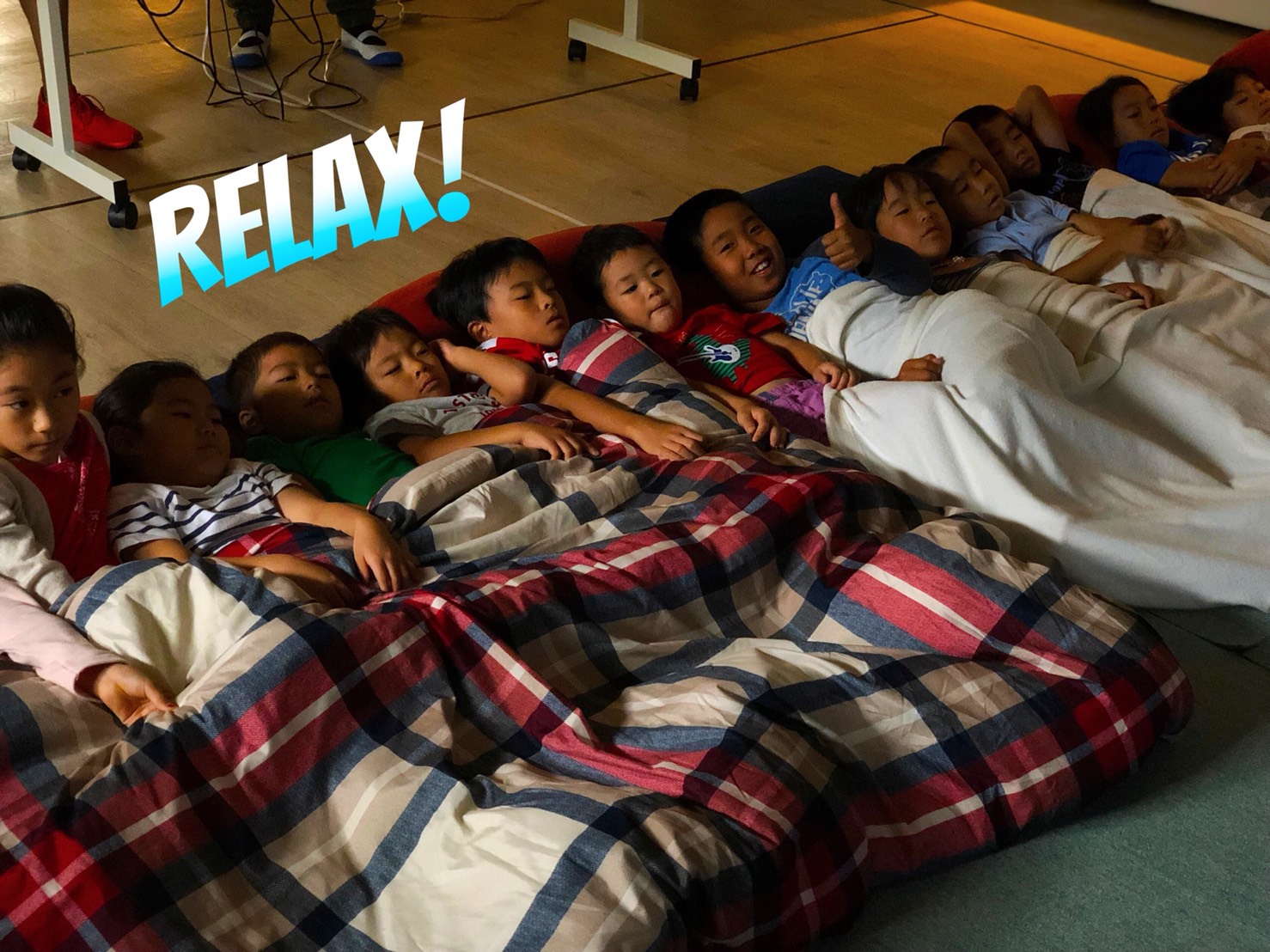 今日はみんなで横になってリラックスをしながら映画を観ました。
