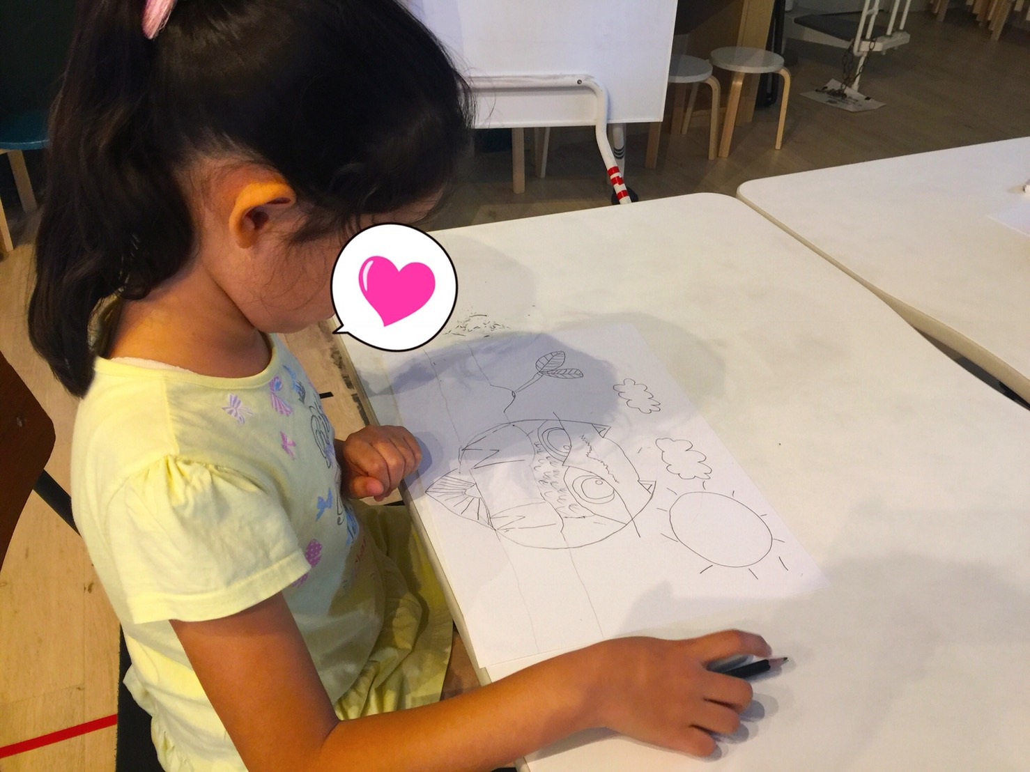 先生:“You can draw it anywhere you want.”(どこにでも描いていいよ)