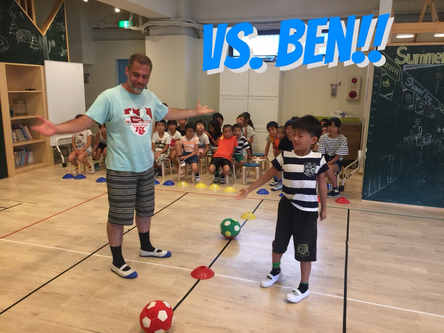 ベン先生は一投目でボールを当てられてアウトになっていました(笑)