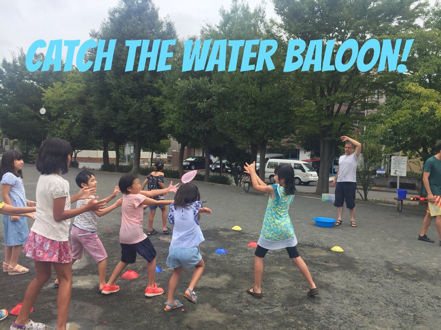 公園に移動して軽く準備運動をした後は、まずは“Water Balloon Toss”から始まりました。