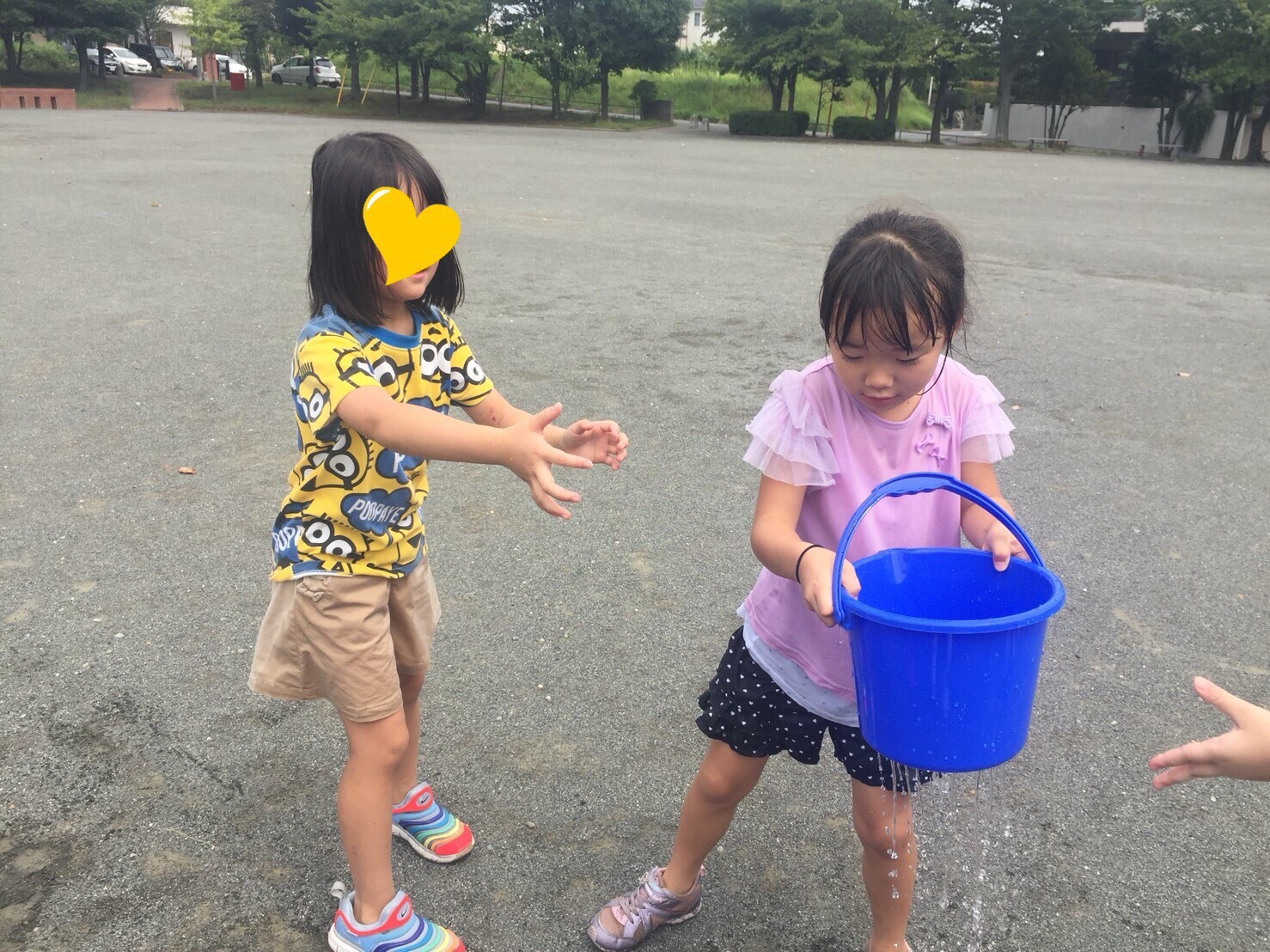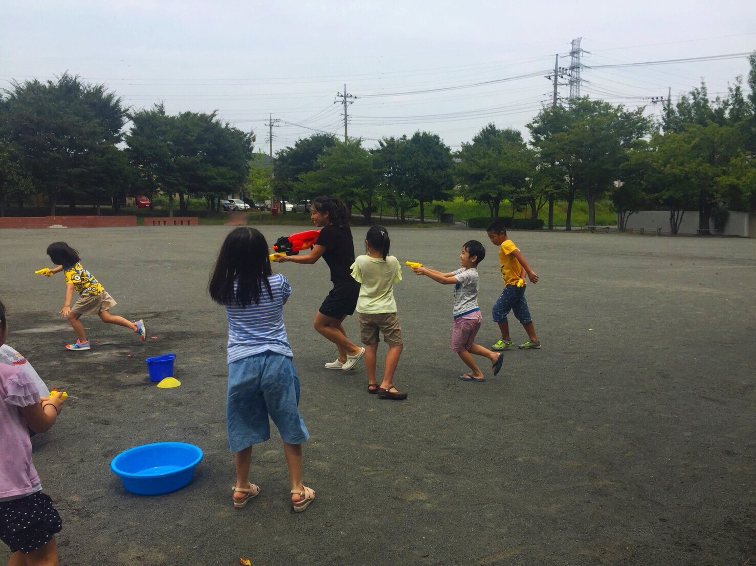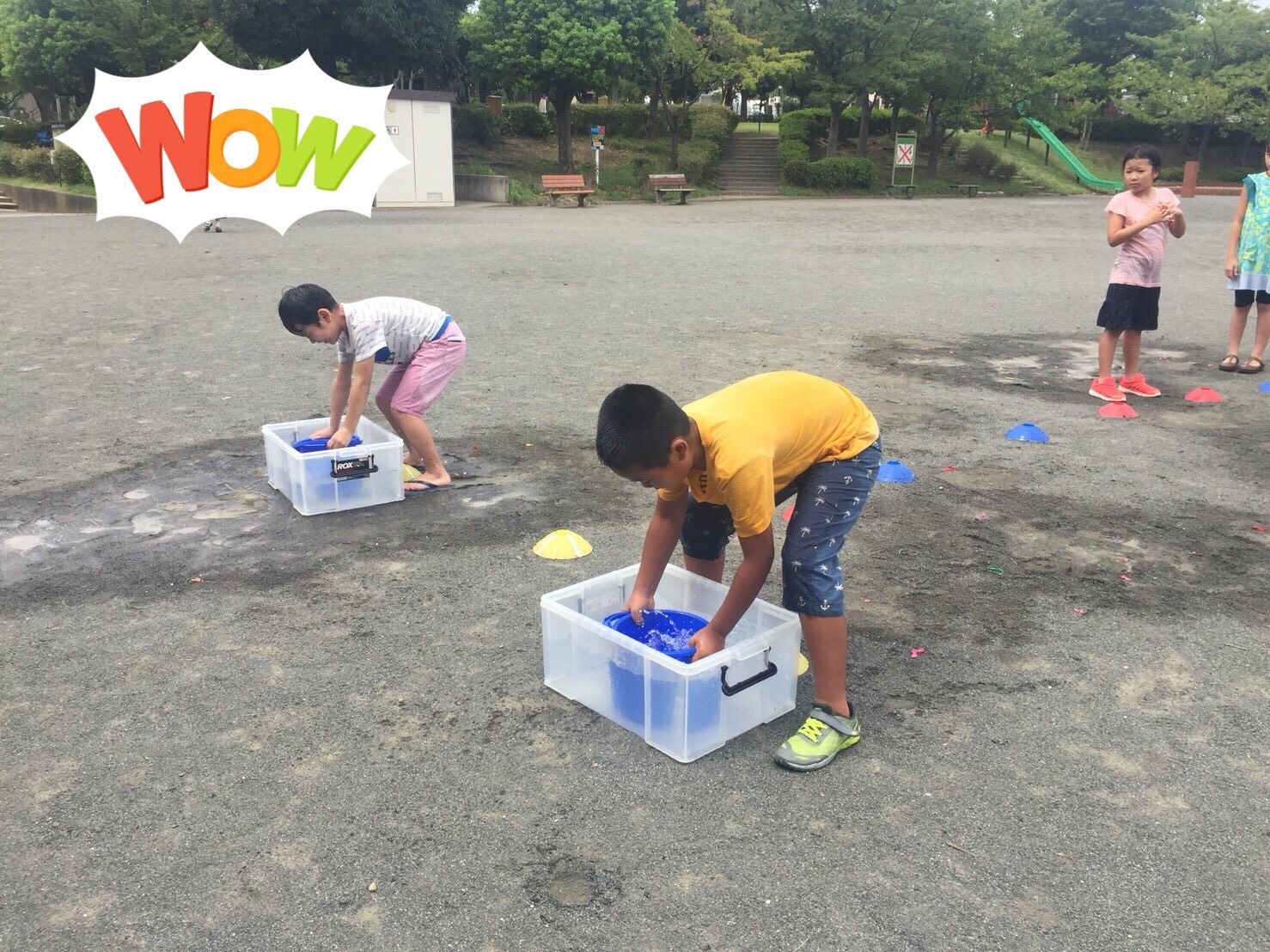 今日で3回目のウォーターデイはいよいよ今年最後の回でした。天気も心配されましたが、途中晴れ間も見えるくらいに回復して暑すぎず絶好の外遊び日和でした。