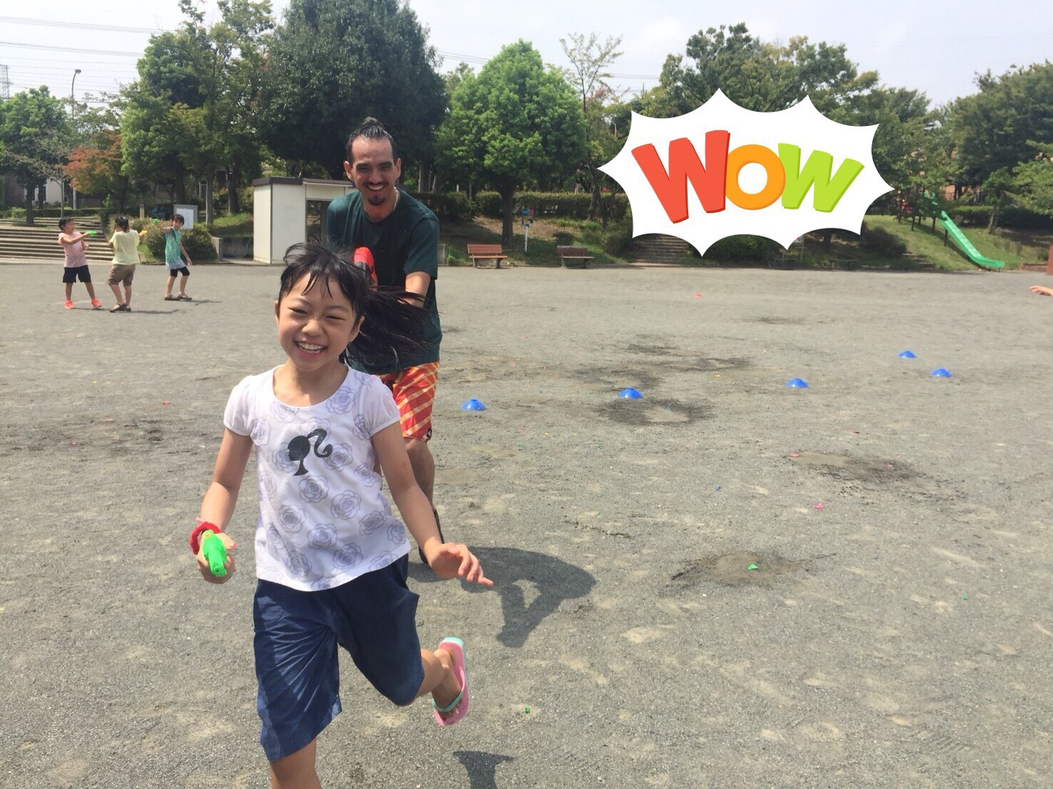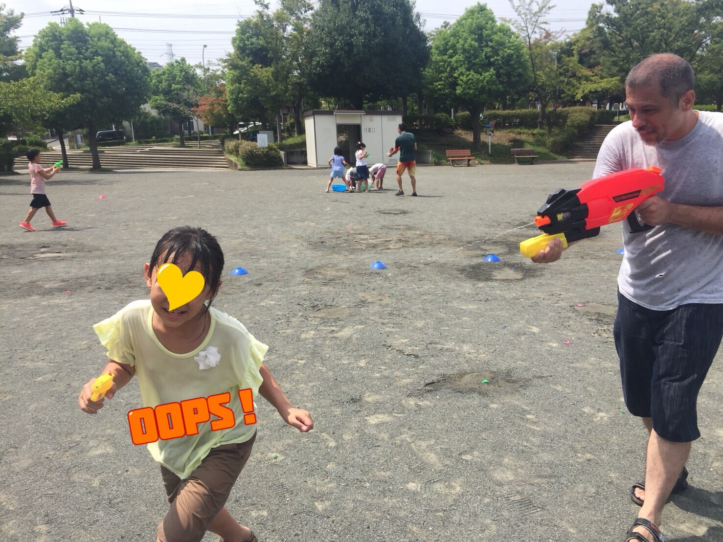 最後はチームに別れて“Gun Shooting”。みんなのターゲットはやっぱり先生!?