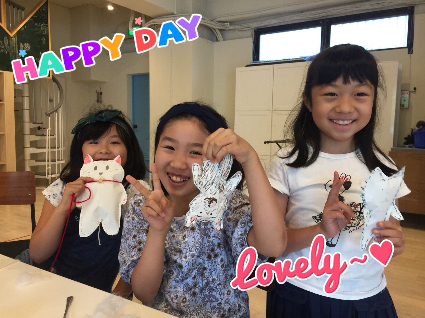 サマースクール24日目のイベントは”Stick Puppets”(アイスの棒人形)を作りました。