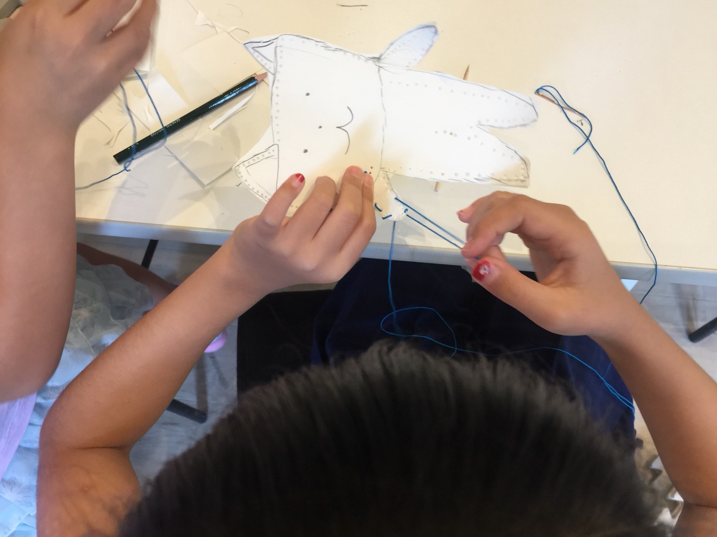 それぞれ好きな色の糸を選んで丁寧に縫い合わせて行きました。